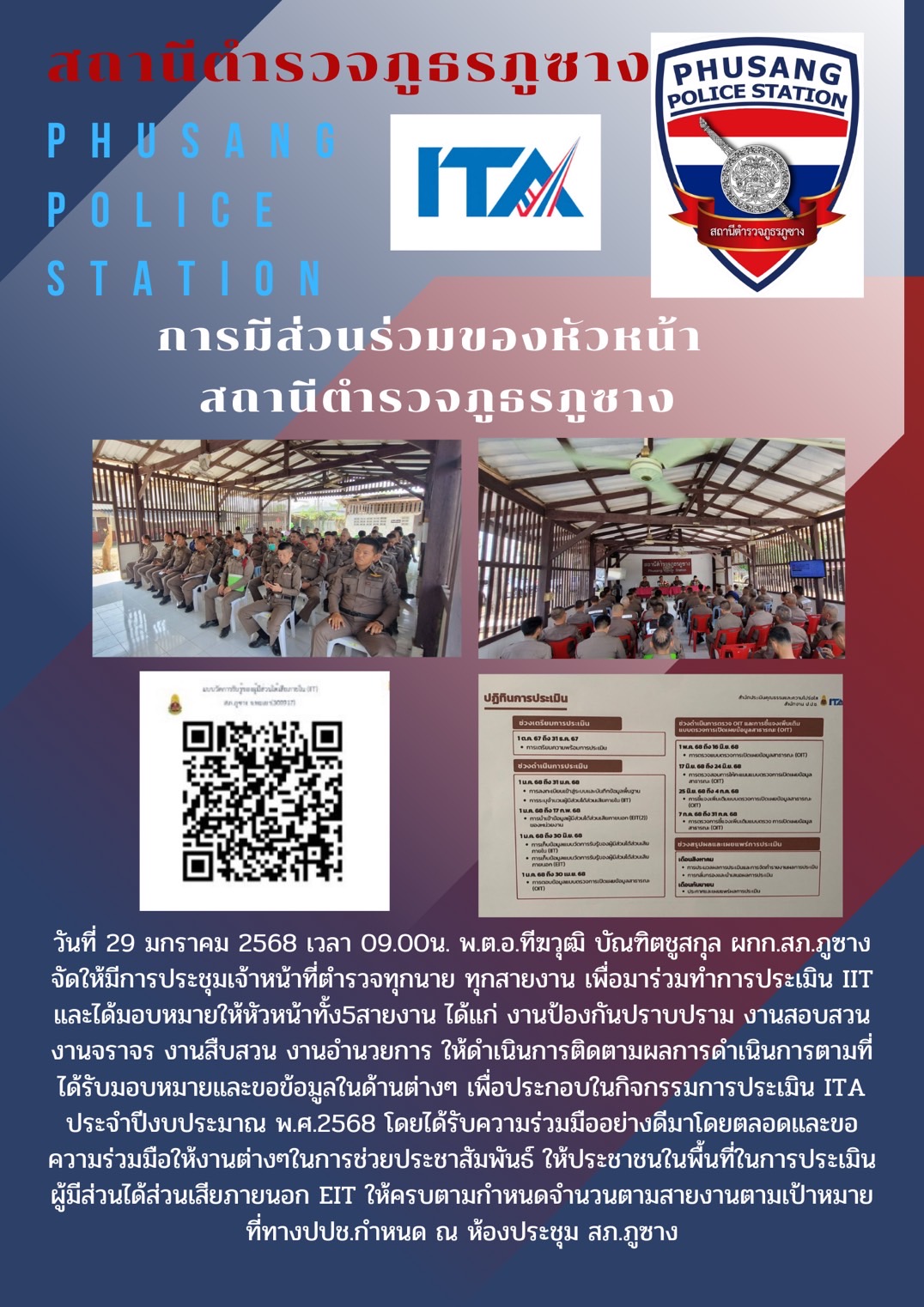 วันที่ 29 มกราคม 2568 เวลา 09.00 น. พ.ต.อ.ทีฆวุฒิ บัณฑิตชูสกุล ผกก.สภ.ภูซาง ได้จัดให้มีการประชุมเจ้า