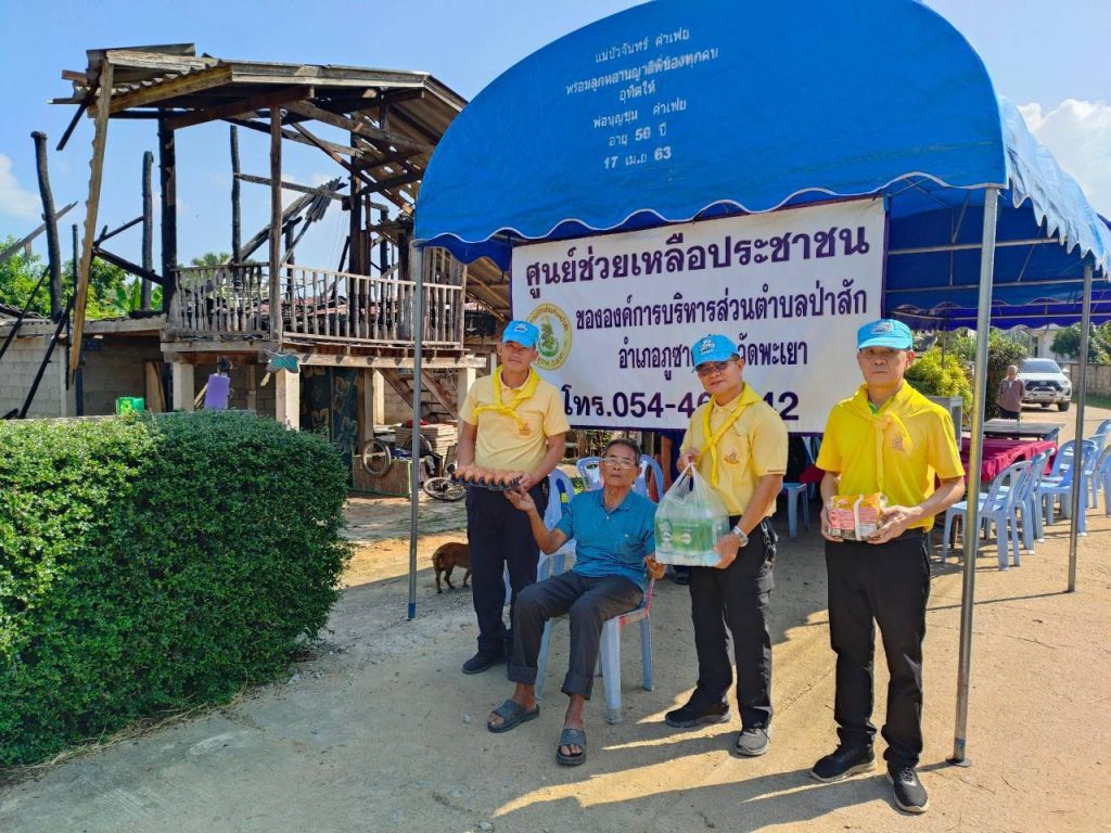 กิจกรรมจิตอาสา “เราทำความดีเพื่อ ชาติ ศาสน์ กษัตริย์”กิจกรรมจิตอาสามอบเครื่องอุปโภค บริโภค ช่วยเหลือเบื้องต้นเหตุไฟไหม้บ้านนายจันทร์ ก๋ายะ บ้านเลขที่ 66 ม.8 ต.ป่าสัก อ.ภูซาง จว.พะเยา