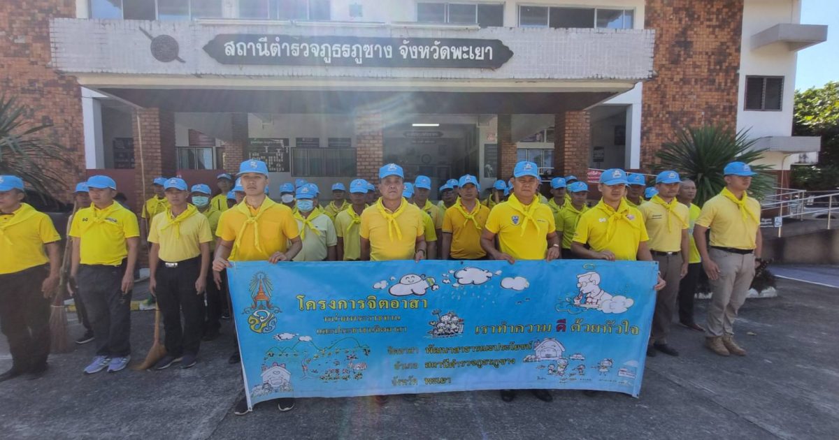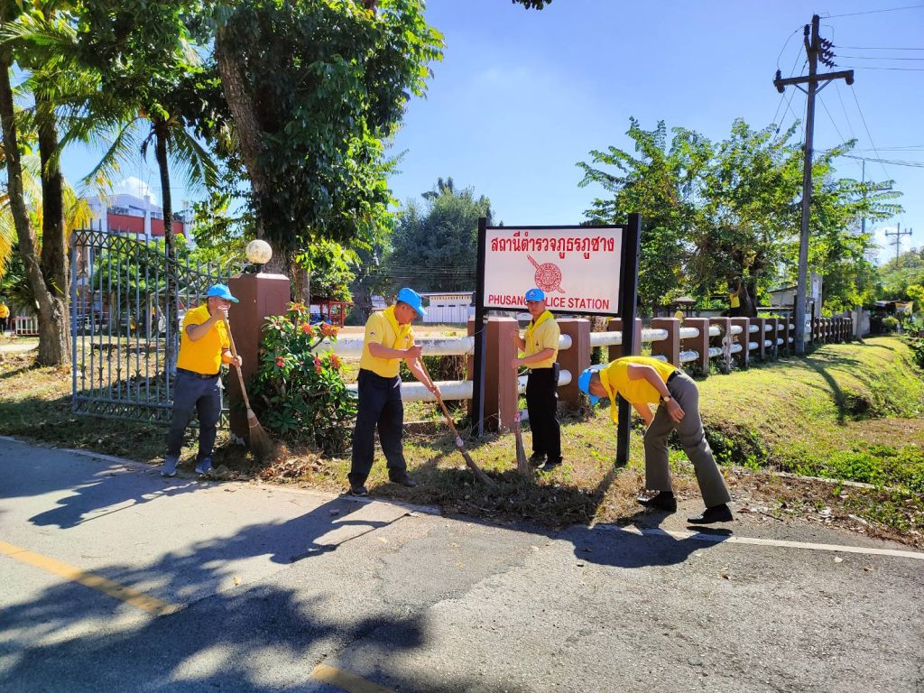 วันที่ 20 ธ.ค.2566 เวลา 13.00 น. โดยการอำนวยการของ พ.ต.อ.ทีฆวุฒิ บัณฑิตชูสกุล ผกก.สภ.ภูซางฯ มอบหมายให้ พ.ต.ท.จารุวัจน์ สุปินะ รอง ผกก.ป.ฯ , พ.ต.ท.สุพนธ์ มีจิตร สวป.ฯ และ พ.ต.ท.สุภาพ บุญเที่ยง สว.อก.ฯ พร้อมข้าราชการตำรวจจิตอาสา ชุด Local Cat จำนวน 70 นาย จัดกิจกรรมจิตอาสาพัฒนา “เราทำความดีด้วยหัวใจ” พัฒนาตัดหญ้า เก็บกวาดขยะ ปรับภูมิทัศน์ และฉีดน้ำทำความสะอาดสถานที่่บริเวณรอบสถานี เพื่ออำนวยความสะดวกให้แก่ประชาชนที่มาติดต่อราชการ ณ บริเวณ สภ.ภูซาง จว.พะเยา