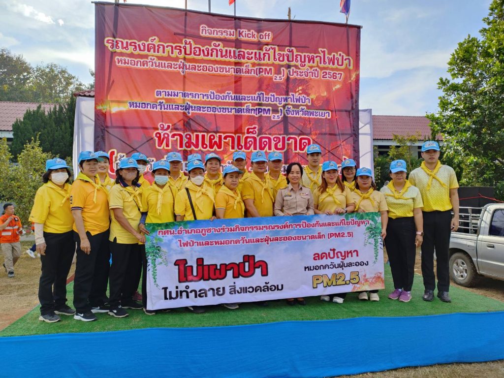 พ.ต.อ.ทีฆวุฒิ บัณฑิตชูสกุล ผกก.สภ.ภูซางฯ ,พ.ต.ท.หญิงจุฬาลักษณ์ เผ่ากันทะ รอง ผกก.(สอบสวน) ฯ ,พ.ต.ท.บรมวิชญ์ วังนัยกูล สว.(สอบสวน)ฯ พร้อมด้วยข้าราชการตำรวจ สภ.ภูซาง ร่วมกับฝ่ายปกครอง ส่วนราชการฯ ผู้นำชุมชน ประชาชนจิตอาสา ร่วมกิจกรรม Kick off รณรงค์การป้องกันและแก้ไขปัญหาไฟป่าและหมอกควันฝุ่นละอองขนาดเล็ก PM 2.5 ประจำปี 2567 (ห้ามเผาโดยเด็ดขาด ห้วง วันที่ 15 ก.พ.67 – 30 เม.ย.67 ) ณ สนามหน้าที่ว่าการอำเภอภูซาง โดยมีนายกิตติ ชัยดรุณ นายอำเภอภูซาง เป็นประธาน