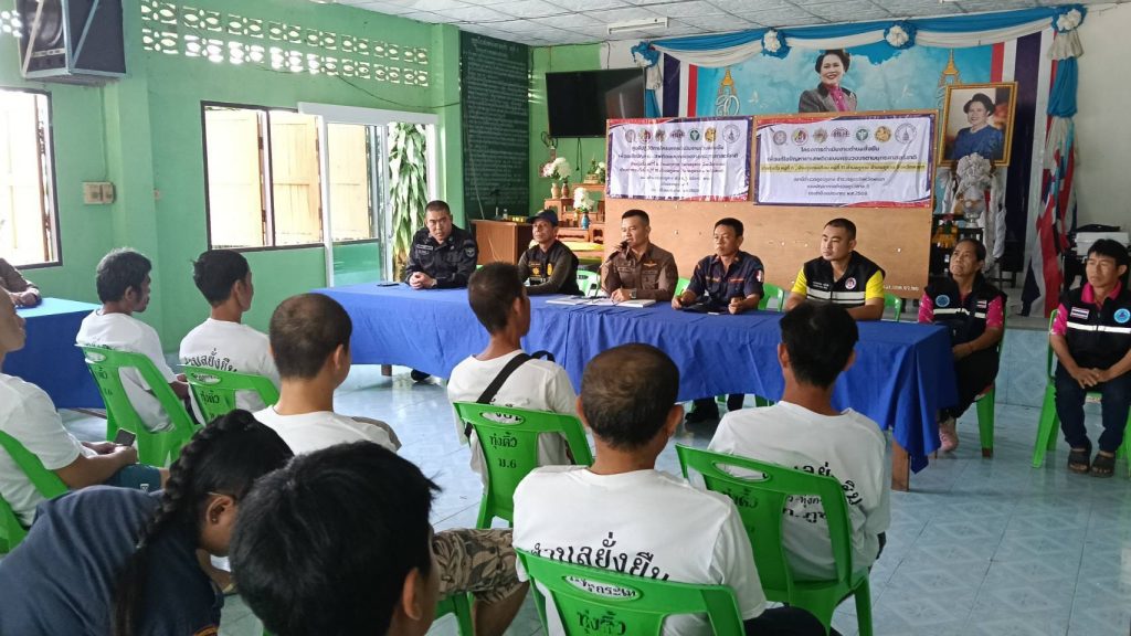 – ร.ต.อ.อุทัย วงศ์ใหญ่ รอง สวป.(ชส.)ฯ หน.ชุดตำบลยั่งยืนฯ พร้อมภาคีเครือข่ายพบปะกับผู้เข้าร่วมโครงการให้คำแนะนำในการเข้าร่วมโครงการและกระบวนการบำบัดโดยชุมชนมีส่วนร่วม CBTx ตลอดจนให้กำลังใจแก่ผู้เข้าร่วมโครงการ