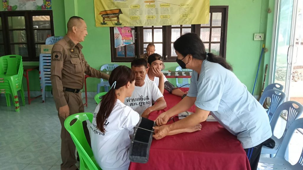 – เจ้าหน้าที่ อสม.บ้านทุ่งติ้วหมู่ 6 และบ้านทุ่งกระเทียม หมู่ 11 ร่วมตรวจวัดความดันและชั่งน้ำหนักผู้เข้าร่วมโครงการ แนะนำการรักษาสุขภาพร่างกายให้แข็งแรง