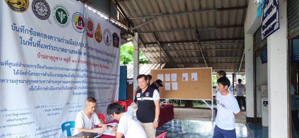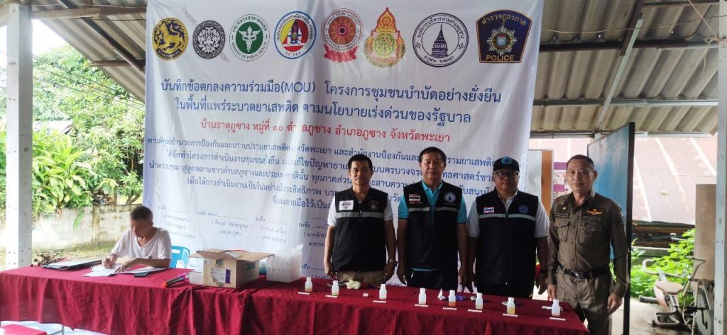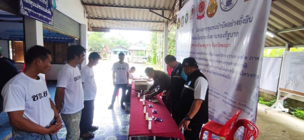 – ขับเคลื่อนโครงการชุมชนบำบัดอย่างยั่งยืนในพื้นที่แพร่ระบาดยาเสพติดตามนโยบายเร่งด่วนของรัฐบาล หมู่บ้านธาตุภูซาง หมู่ 10 ต.ภูซาง อ.ภูซาง จว.พะเยา ขั้นตอนที่ 2(ขั้นปฏิบัติการ) โดยดำเนินการ ดังนี้.-