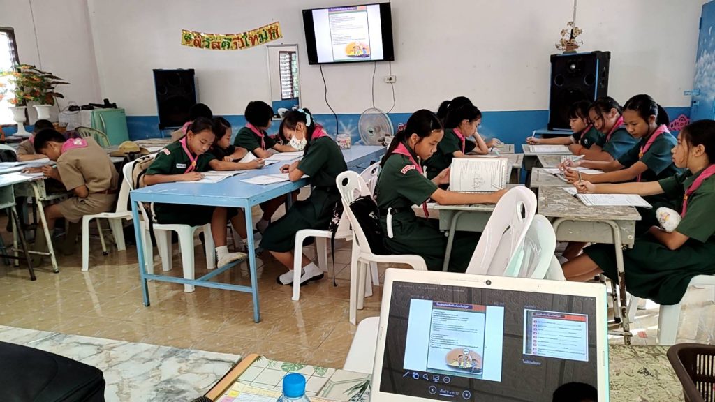 จ.ส.ต.วิทวัส สุขสิริบูรณ์ ผบ.หมู่.ป.ฯ ครูตำรวจแดร์ เข้าทำการสอนตามโครงการ D.A.R.E.ให้กับนักเรียนชั้น ป.5 จำนวน 1 โรงเรียน 1 ห้องเรียน