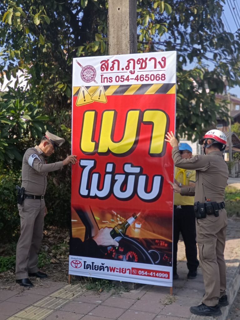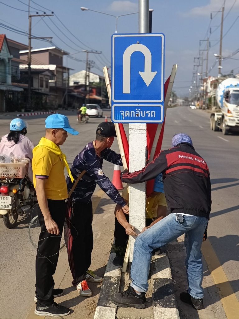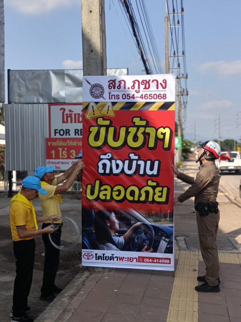 ชุดจราจร และตำรวจจิตอาสา สภ.ภูซาง ช่วยกันติดป้ายรณรงค์ ติดธงแดง บริเวณจุดเสี่ยง ทางโค้ง ทางแยก เพื่อป้องกันและลดอุบัติเหตุทางถนน ในช่วงเทศกาลปีใหม่ 2568