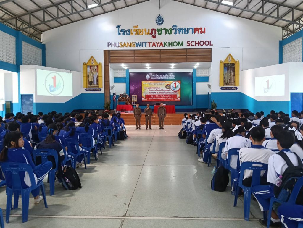 ชุด ชมส.ร่วมพิธีเปิดและร่วมเป็นวิทยากรการป้องกันและแก้ไขปัญหายาเสพติดโครงการขับเคลื่อนการดำเนินงานรณรงค์ป้องกันและแก้ไขปัญหายาเสพติด(TO BE NUMBER ONEในชุมชน) ต่อยอด รุ่นที่ 3 ณ หอประชุมโรงเรียนภูซางวิทยาคม