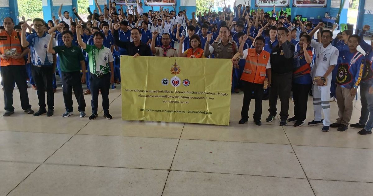 ดำเนินตามโครงการฝึกอบรม “ หนึ่งโรงเรียนหนึ่งทีมกู้ชีพกู้ภัย”กลุ่มภาคเหนือตอนบน ณ โรงเรียนภูซางวิทยาคม มีนักเรียนเข้าอบรม 200 คน