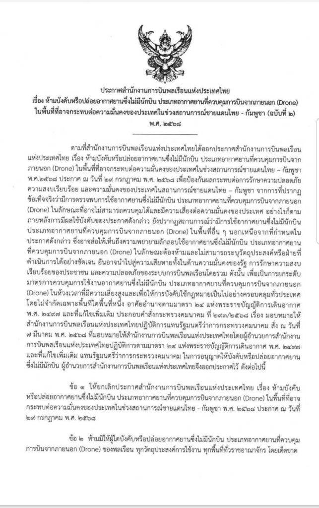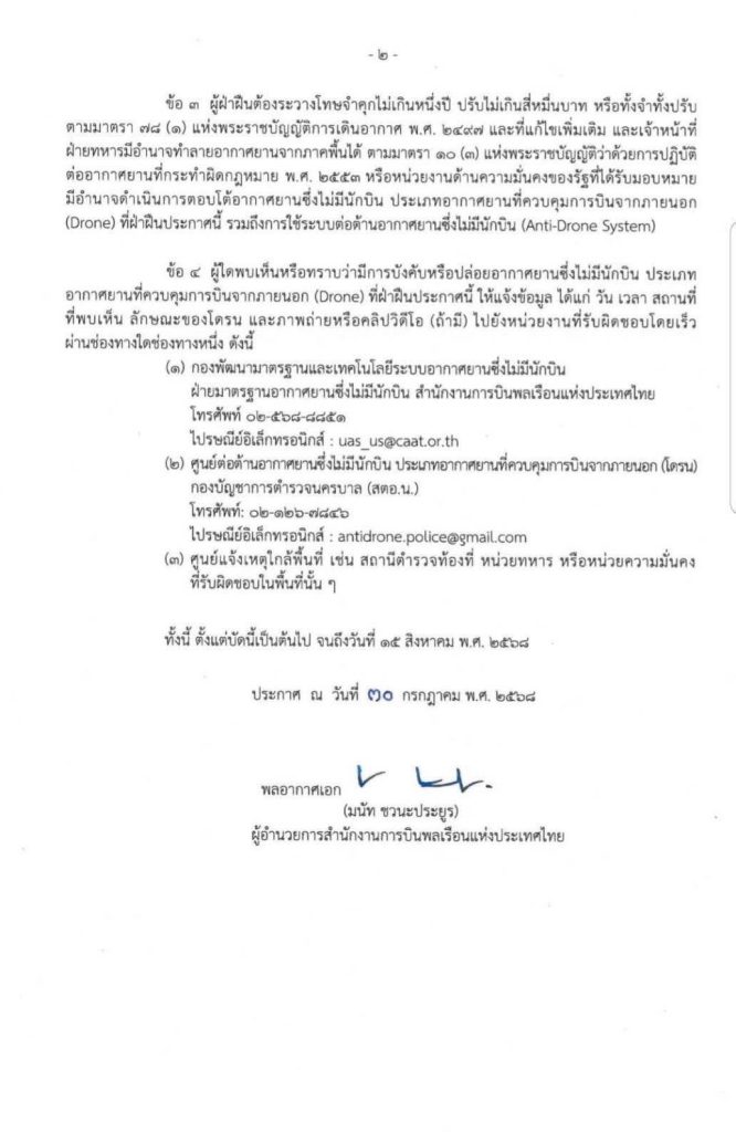 ประชาสัมพันธ์ งดบินโดรน ตั้งแต่วันนี้-15 สิงหาคม 2568