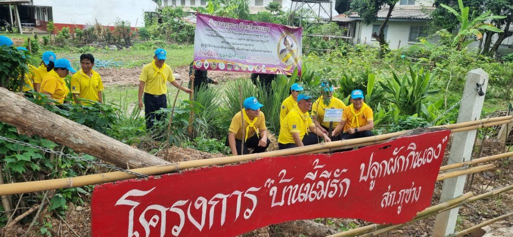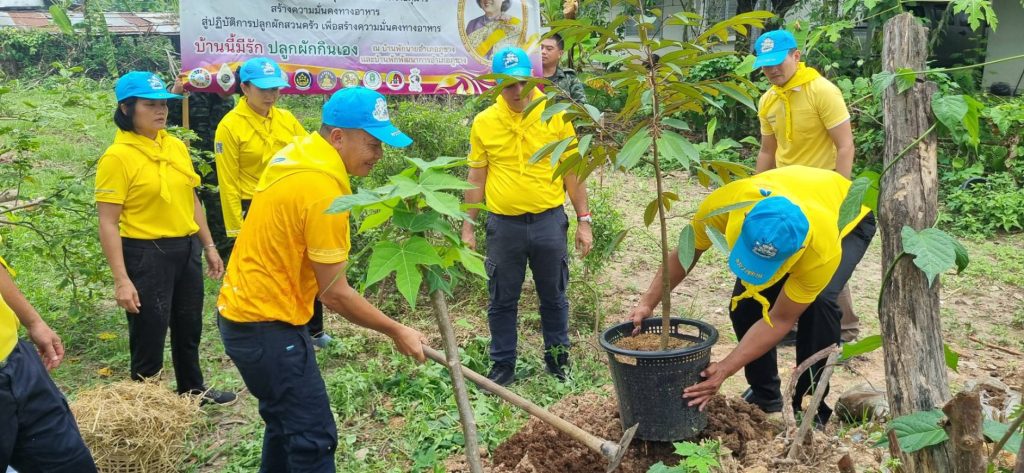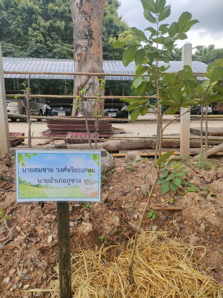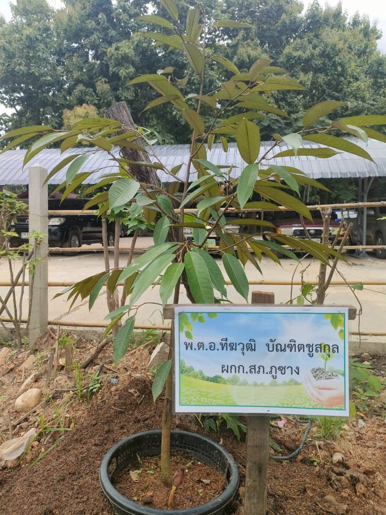 ปลูกต้นทุเรียน และต้นเงาะ บริเวณแปลงผักตามโครงการ”บ้านนี้มีรักปลูกผักกินเอง” สภ.ภูซาง