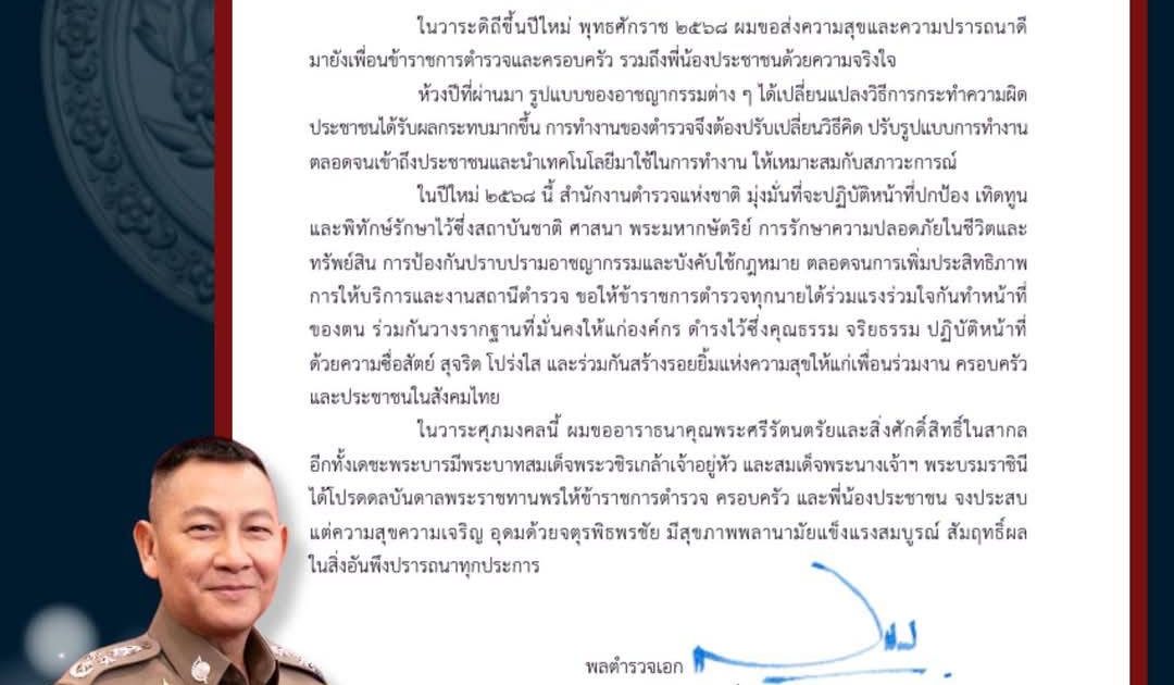 ผบ.ตร อวยพรวันปีใหม่ 2568 31 ธันวาคม 2567 โดย admin / ข่าวประชาสัมพันธ์,ข่าวฝากประชาสัมพันธ์ Facebook iconFacebookTwitter iconTwitterLINE iconLine