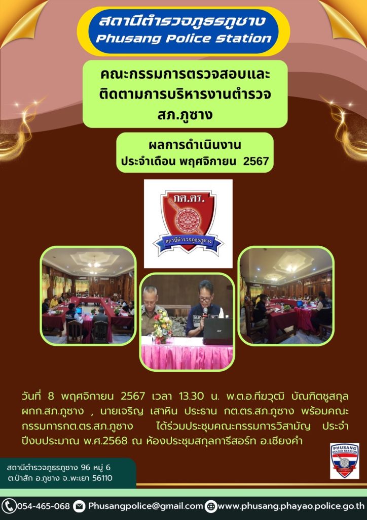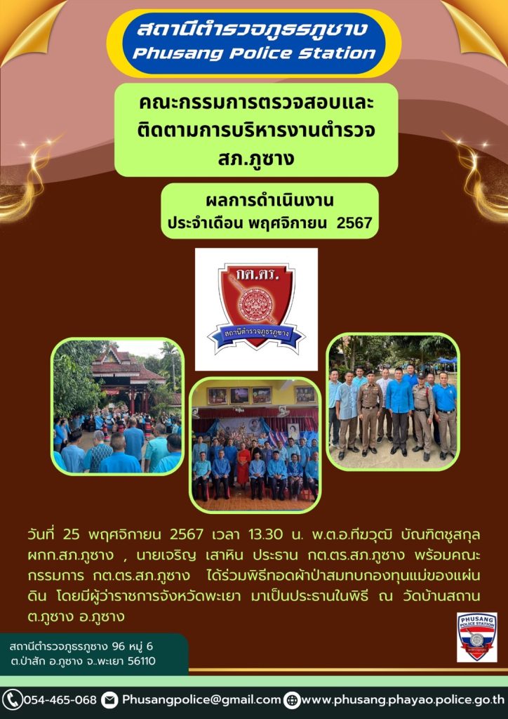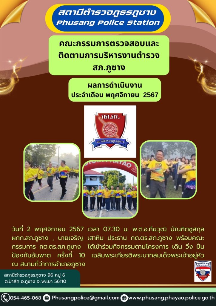 ผลการปฏิบัติงาน กต.ตร.สภ.ภูซาง ประจำเดือน พฤศจิกายน 2567