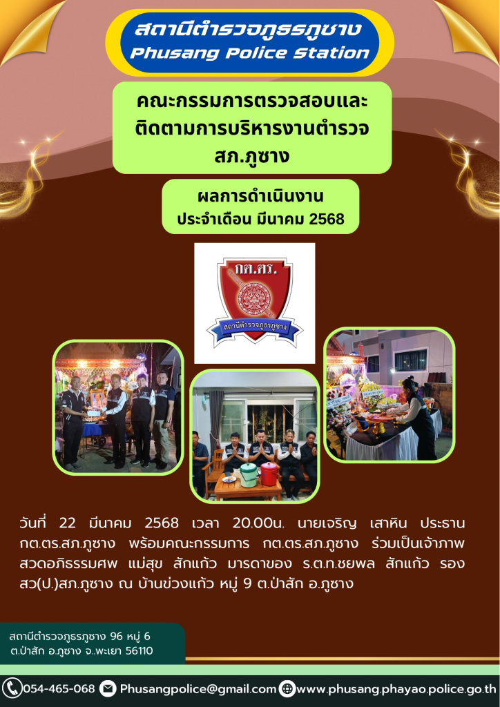 ผลการปฏิบัติงาน กต.ตร.สภ.ภูซาง ประจำเดือน มีนาคม 2568
