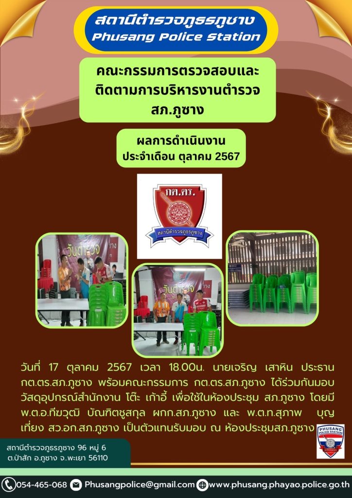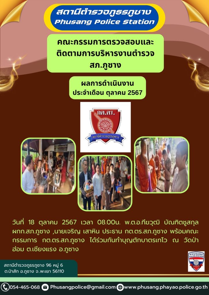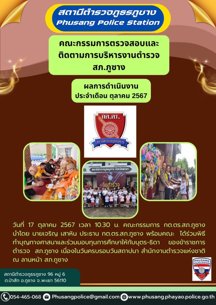 ผลการปฏิบัติงาน กต.ตร.สภ.ภูซาง ประจำเดือน ตุลาคม 2567