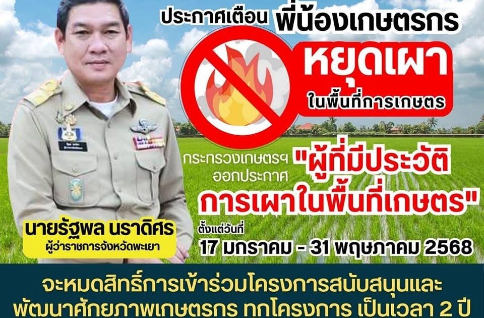 ผู้ที่มีประวัติการเผาในพื้นที่เกษตร จะหมดสิทธิ์การเข้าร่วมโครงการสนับสนุนและพัฒนาศักยภาพเกษตกร ทุกโครงการ เป็นระยะเวลา 2 ปี