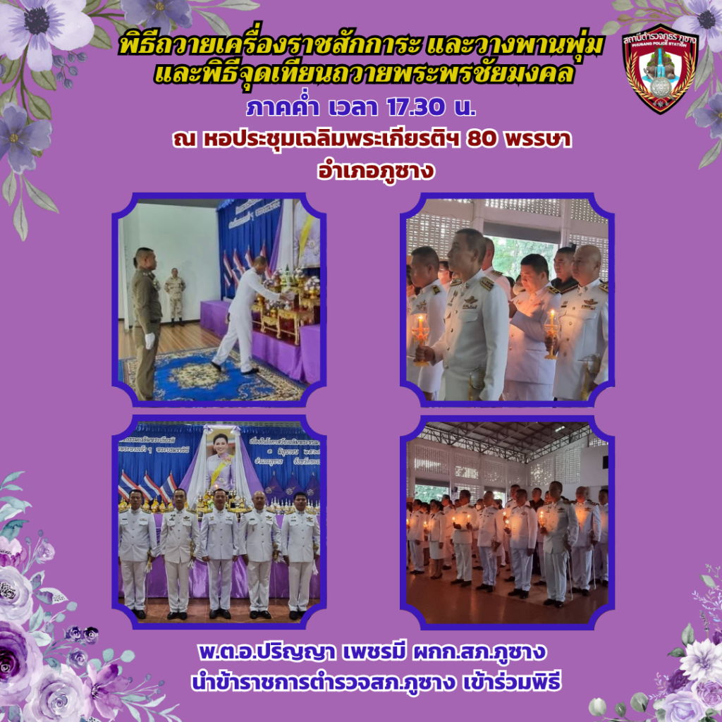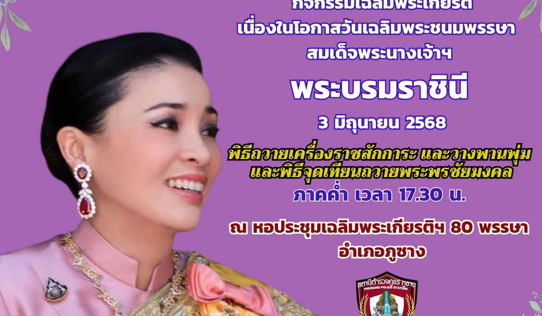 พิธีถวายเครื่องสักการะและวางพานพุ่มและพิธีจุดเทียนถวายพระพรชัยมงคล เนื่องในโอกาสวันเฉลิมพระชนมพรรษา สมเด็จพระนางเจ้าฯ พระบรมราชินี 3 มิถุนายน 2568 ณ หอประชุมเฉลิมพระเกียรติ 80 พรรษา อำเภอภูซาง