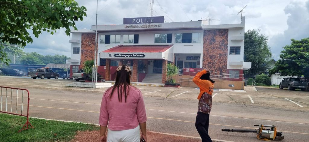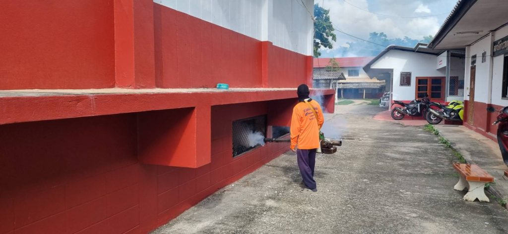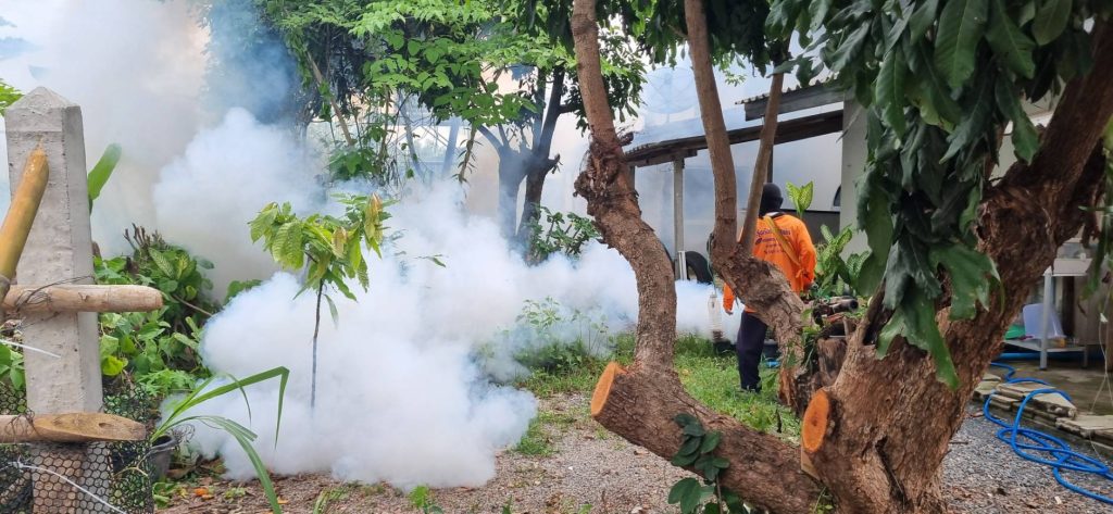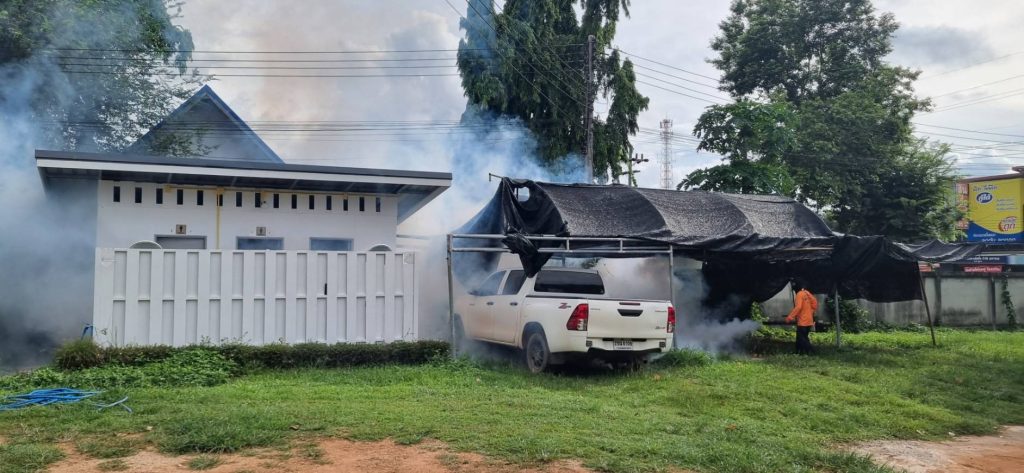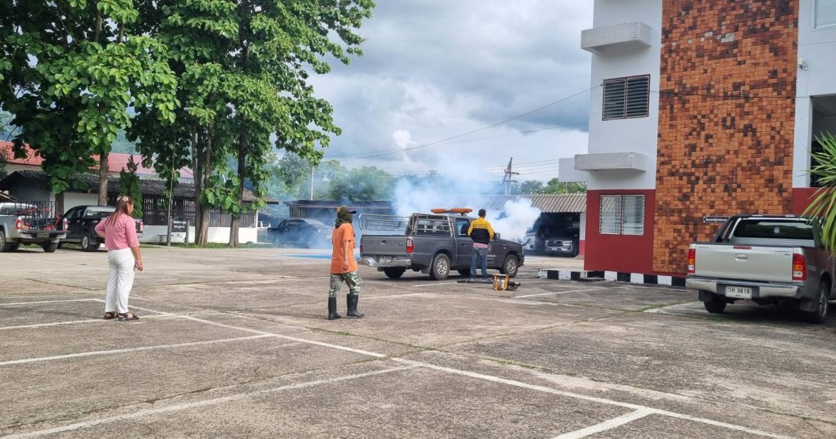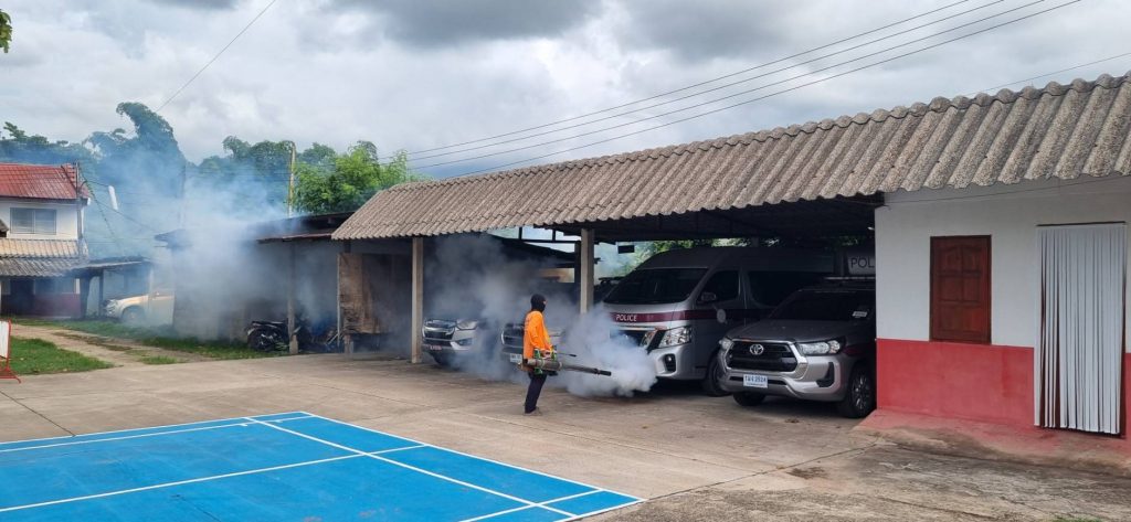 พ่นหมอกควันไล่ยุงบริเวณอาคารบ้านพัก และรอบๆที่ทำการ สภ ภูซาง
