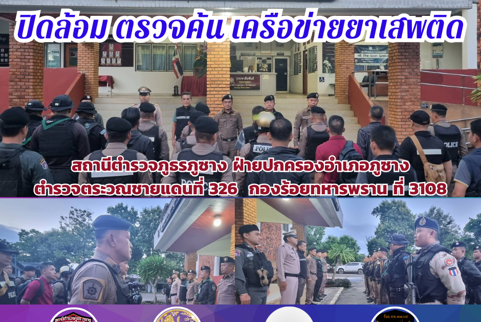 ร่วมกันปล่อยแถวระดมกำลังกวาดล้างอาชญากรรม ”ปิดล้อม ตรวจค้น เครือข่ายยาเสพติด“ในพื้นที่รับผิดชอบอำเภอภูซาง ณ ลานหน้า สภ.ภูซาง