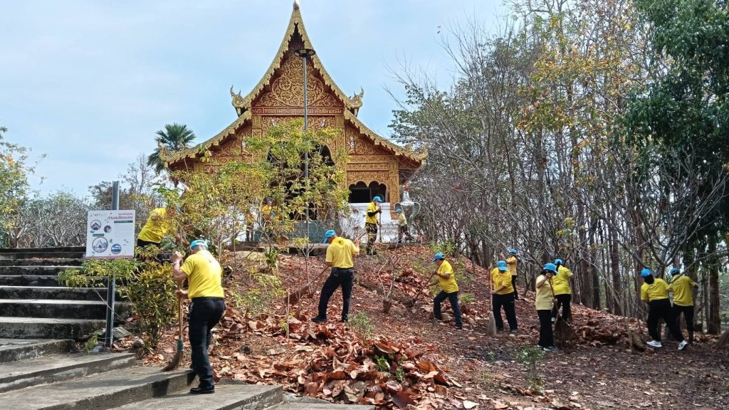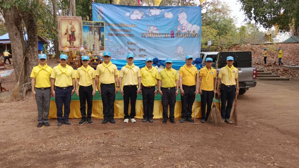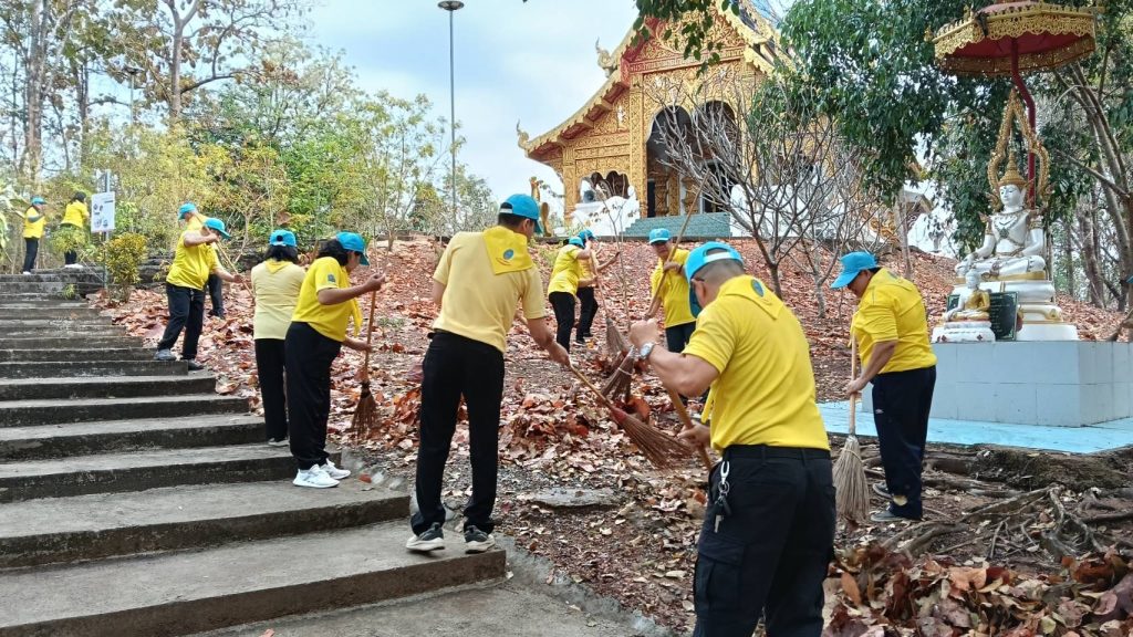 ร่วมกิจกรรมจิตอาสา “เราทำความดีเพื่อ ชาติ ศาสน์ กษัตริย์”กิจกรรมจิตอาสาพัฒนาปรับปรุงภูมิทัศน์ทำแนวกั้นไฟเพื่อป้องกันการเกิดไฟไหม้และแก้ไขปัญหาหมอกควันและฝุ่นละอองขนาดเล็ก PM 2.5 เนื่องในวันคล้ายวันพระราชสมภพ พระบาทสมเด็จพระพุทธเลิศหล้านภาลัยณ พระธาตุม่อนไก่แก้ว ม.3 ต.เชียงแรง อ.ภูซาง จว.พะเยา