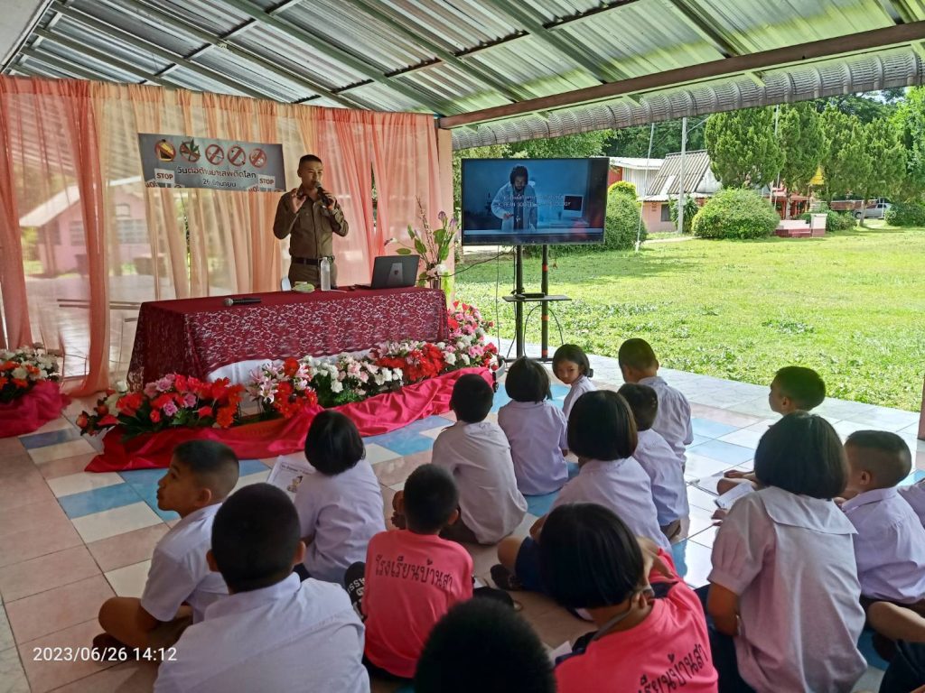 วันที่ 26มิ.ย.66 โดยการอำนวยการของ พ.ต.อ.ชัชวาล แสงบุญ ผกก.สภ.ภูซาง ควบคุมการปฏิบัติโดย พ.ต.ท.จารุวัจน์ สุปินะ รอง ผกก.ป. มอบหมายให้ ชุด ชมส.และ ครูตำรวจแดร์ เข้าร่วมกิจกรรมวันต่อต้านยาเสพติดสากล กับสถานศึกษาดังนี้