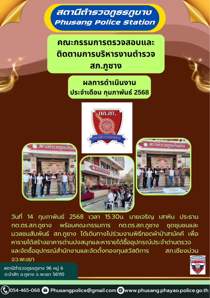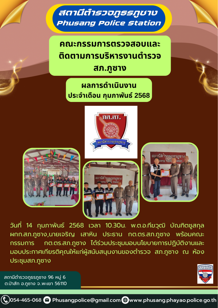 ผลการปฏิบัติงาน กต.ตร.สภ.ภูซาง เดือน กุมภาพันธ์ 2568