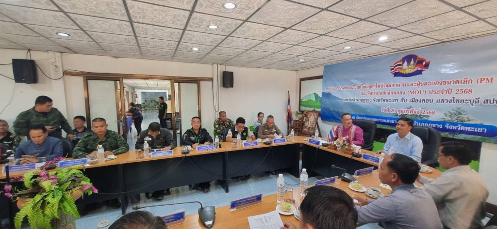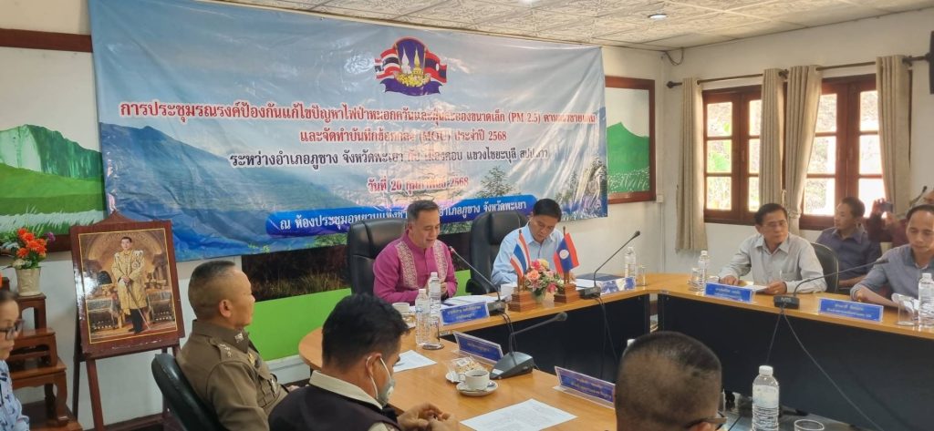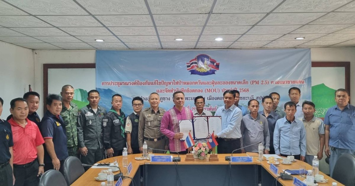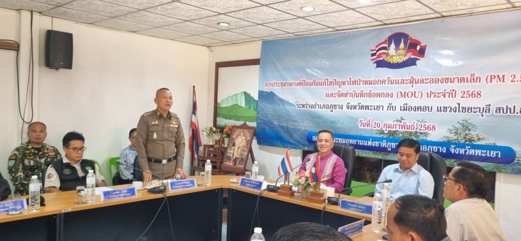 ร่วมประชุมรณรงค์ป้องกันแก้ไขปัญหาไฟป่าหมอกควันและฝุ่นละอองขนาดเล็ก(PM 2.5)ตามแนวชายแดนและจัดทำบันทึกตกลง(MUO)ประจำปี 2568 ระหว่างอำเภอภูซาง จังหวัดพะเยากับเมืองแขวงไชยบุรี สปป.ลาว