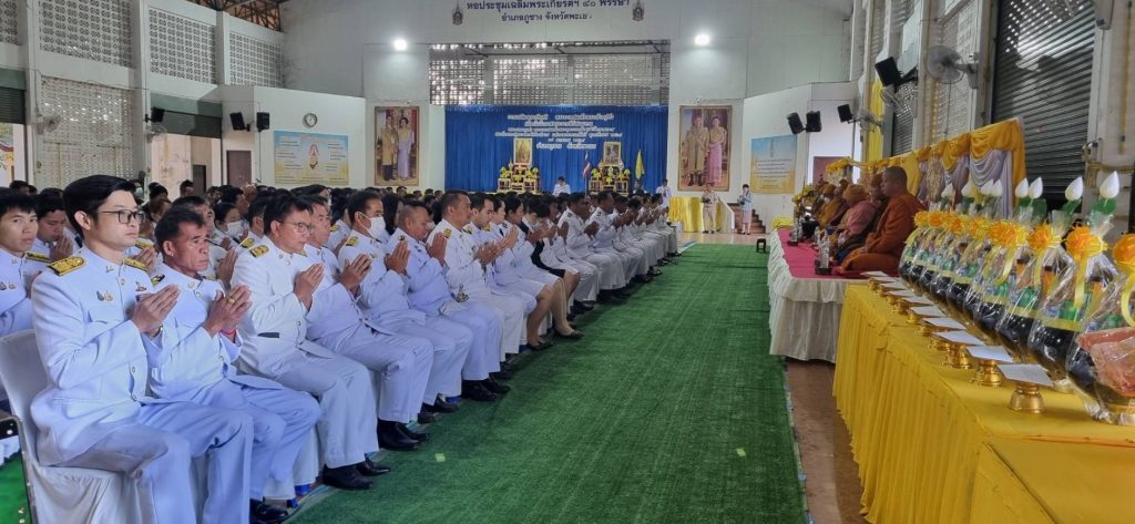 ร่วมพิธีเฉลิมพระเกียรติพระบาทสมเด็จพระเจ้าอยู่หัว เจริญพระพุทธมนต์และทำบุญตักบาตรถวายเป็นพระราชกุศลเนื่องในพระราชพิธีสมมงคลพระชนมายุเท่าพระบาทสมเด็จพระพุทธยอดฟ้าจุฬาโลกมหาราช สมเด็จพระปฐมบรมกษัตริยาธิราช แห่งพระราชวงศ์จักรี ณ หอประชุมเฉลิมพระเกียรติ 80 พรรษาอำเภอภูซาง