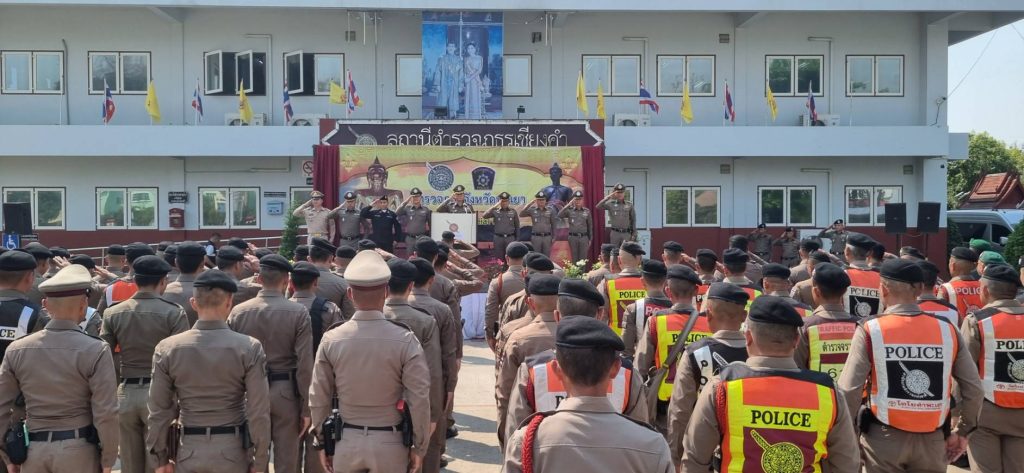 วันที่ (5 กุมภาพันธ์ 2567) เวลา 14.00 น. พ.ต.อ.ทีฆวุฒิ บัณฑิตชูสกุล ผกก.ฯ , พ.ต.ท.จารุวัจน์ สุปินะ รอง ผกก.ป. , พ.ต.ท.สุรกิจ เปี่ยมอริยธน รอง ผกก.สส.ฯ , พ.ต.ท.สุพนธ์ มีจิตร สวป.ฯ , พ.ต.ท.วีรศักดิ์ ชาวริม สวน.สส.ฯ พร้อม ชุด ชป.ฯ ร่วมระดมกวาดล้างอาชญากรรม ยาเสพติด อาวุธปืน ฯลฯ โดยมี พล.ต.ต.พิทักษ์ นาสมวาส ผบก.ภ.จว.พะเยา เป็นประธานฯ ณ หน้า สภ.เชียงคำ