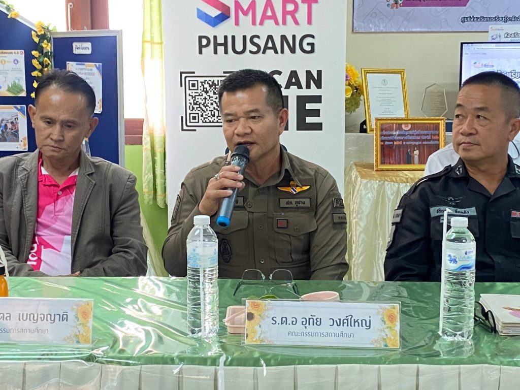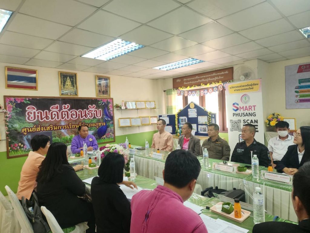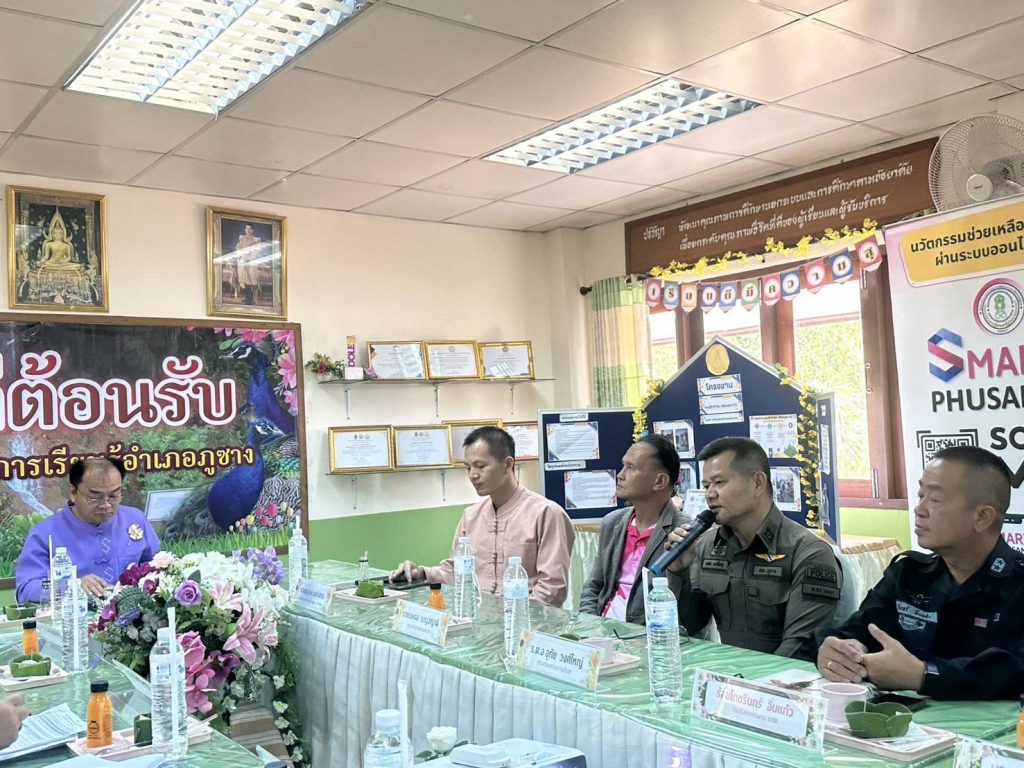 ร.ต.อ.อุทัย วงศ์ใหญ่รอง สวป.(ชส.) สภ.ภูซาง ร่วมประชุมให้ข้อมูลการดำเนินงานโครงการสถานศึกษาสีขาว ปลอดยาเสพติดและอบายมุข ปีการศึกษา 2567 จากคณะกรรมการประเมินของสำนักงานส่งเสริมการเรียนรู้ประจำจังหวัดพะเยา ณ ห้องประชุม สกร.อำเภอภูซาง จังหวัดพะเยา