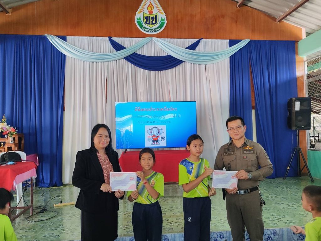 วิทยากรในหัวข้อ โทษของยาเสพติดและวิธีการเอาตัวรอดจากเหตุร้าย( หนี ซ่อน สู้) ร่วมกับชุดสายตรวจ โดย ร.ต.อ.นนทพัทธ์ แสนแก้ว รอง สวป.ฯ ร้อยเวร 20 พร้อมด้วยชุด 201 และสายตรวจ 101 เจ้าหน้าที่ ธุรการป.ฯ ได้ให้ความรู้กับนักเรียนทุกระดับชั้นของโรงเรียนบ้านปง ต.สบบง และได้มอบใบประกาศนียบัตรให้กับ นร.ที่จบหลักสูตรโครงการ D.A.R.E.