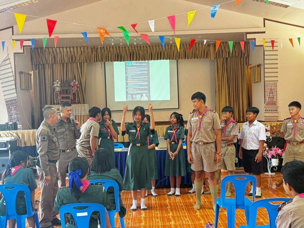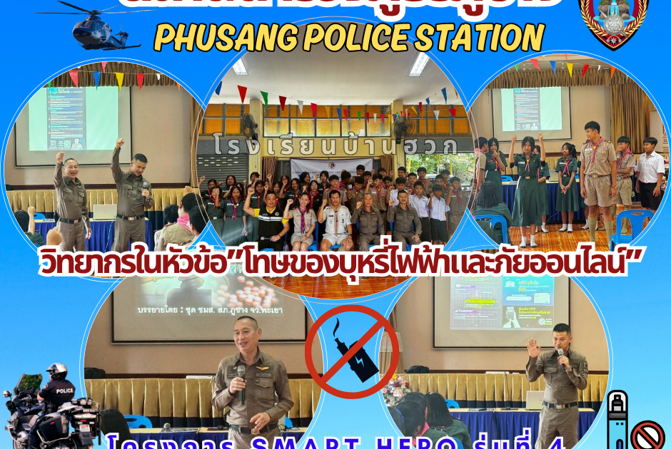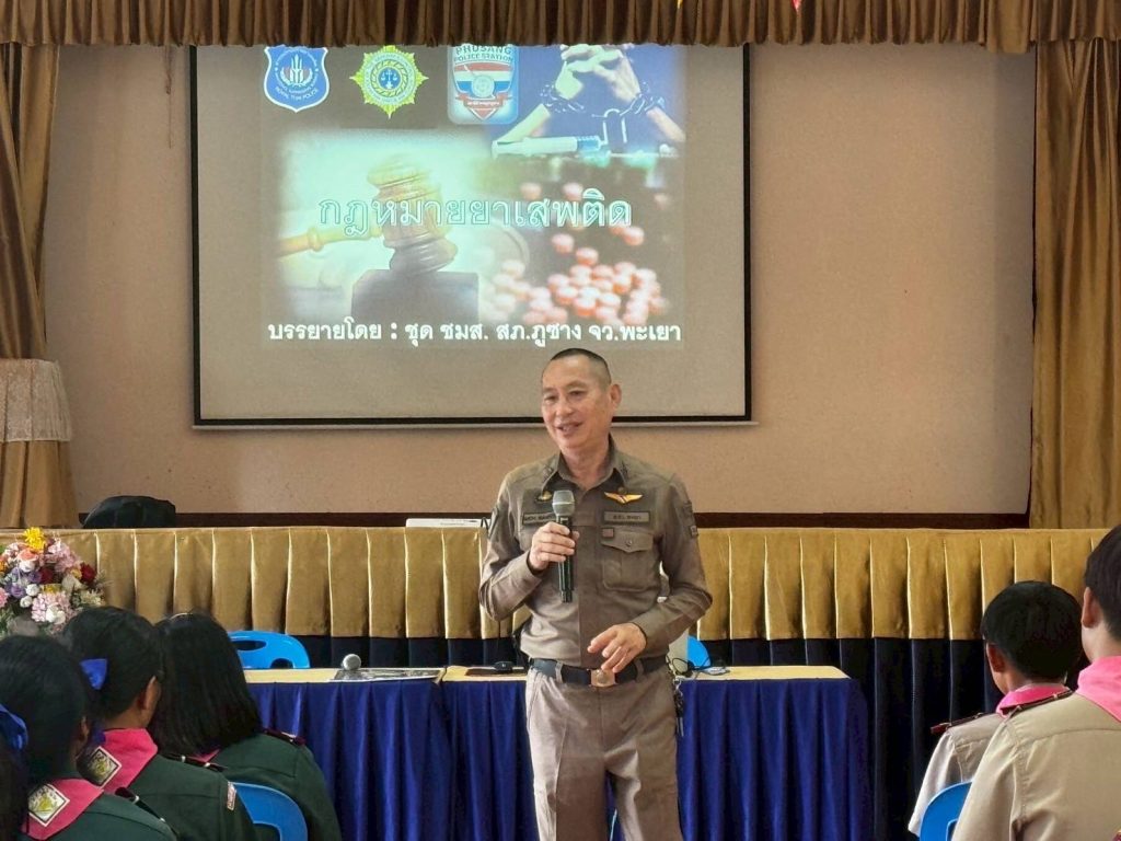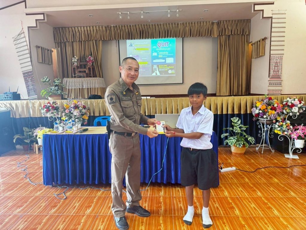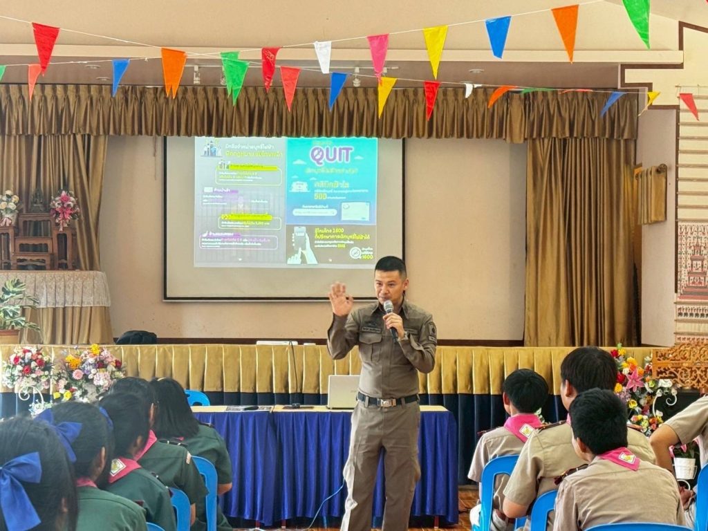 วิทยากรให้ความรู้ในหัวข้อ“โทษของบุหรี่ไฟฟ้าและภัยออนไลน์”ให้กับนักเรียนโรงเรียนบ้านฮวก ตำบลภูซาง