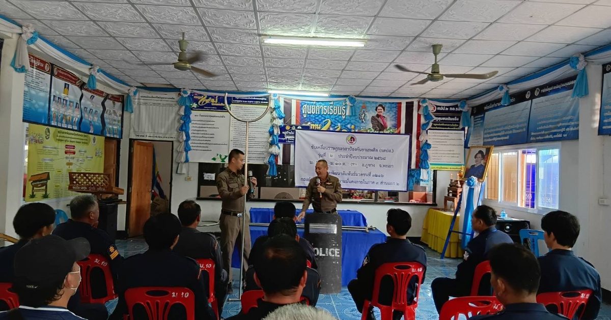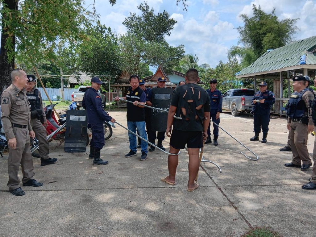 สาธิตการระงับเหตุบุคคลคุ้มคลั่ง (โดยการใช้ไม้ง่าม)ให้กับอาสาสมัครตำรวจบ้าน (สตบ.) ณ ศาลาอเนกประสงค์บ้านธาตุภูซาง ม.10 ต.ภูซาง อ.ภูซาง จว.พะเยา