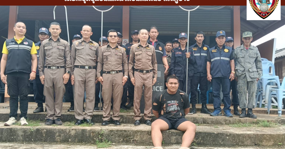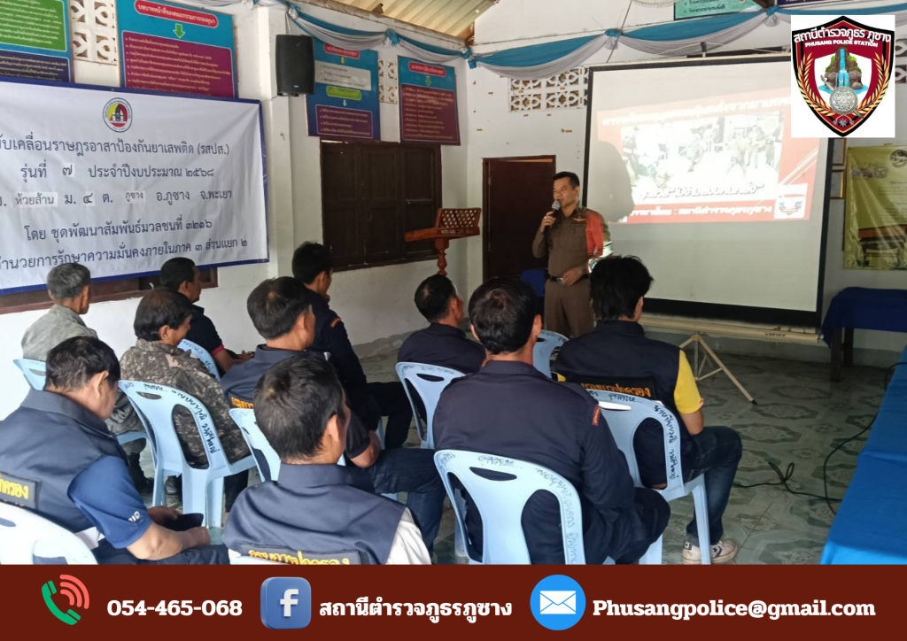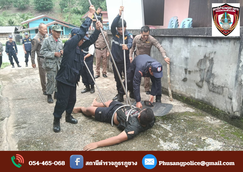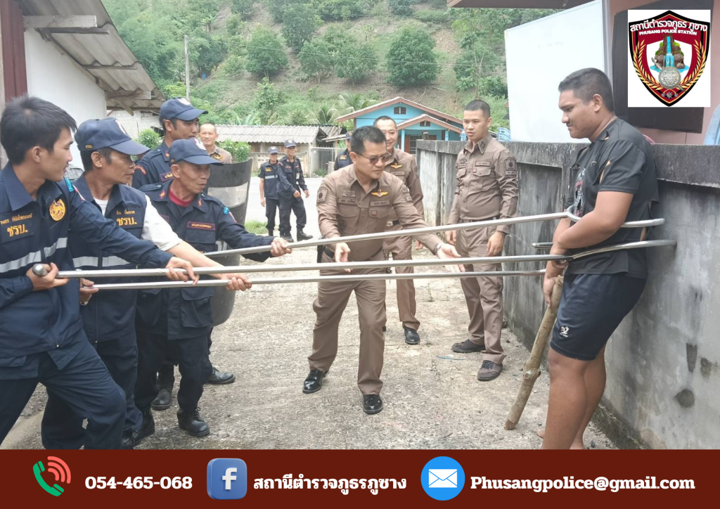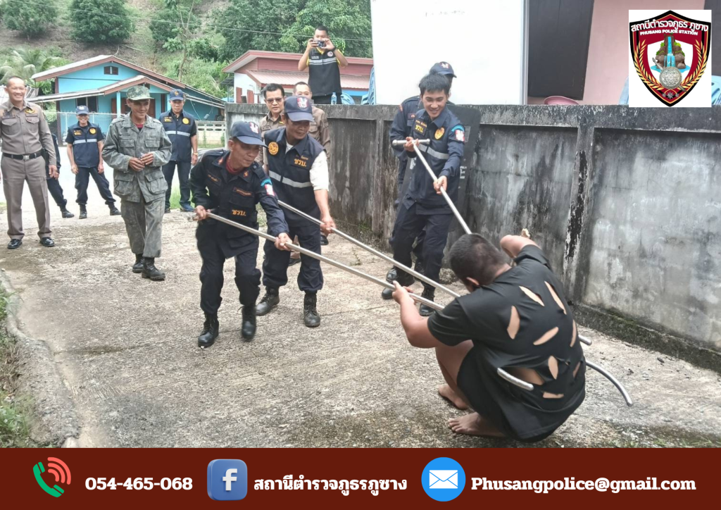 สาธิต การระงับเหตุบุคคลคลุ้มคลั่ง(โดยใช้ไม้ง่าม)และการตั้งจุดตรวจจุดสกัด ให้กับชรบ.หมู่4 ต.ภูซาง โดยชุด ชมส.สภ.ภูซาง