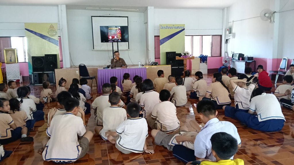 อบรมให้ความรู้การปฐมพยาบาลเบื้องต้นโทษและพิษภัยของบุหรี่ไฟฟ้า การระงับเหตุและวิธีเอาตัวรอดเมื่ออยู่ในสถานการณ์บุคคลคุ้มคลั่ง (หนี/ซ่อน/สู้)ให้กับนักเรียนโรงเรียนบ้านสบบง ณ ห้องประชุมโรงเรียนบ้านสบบง ม.10 ต.สบบง อ.ภูซาง จ.พะเยา