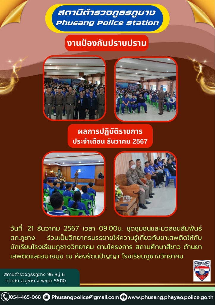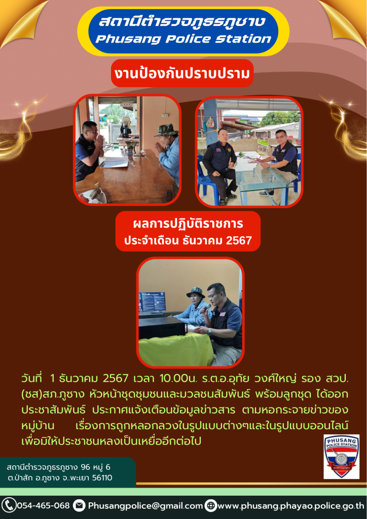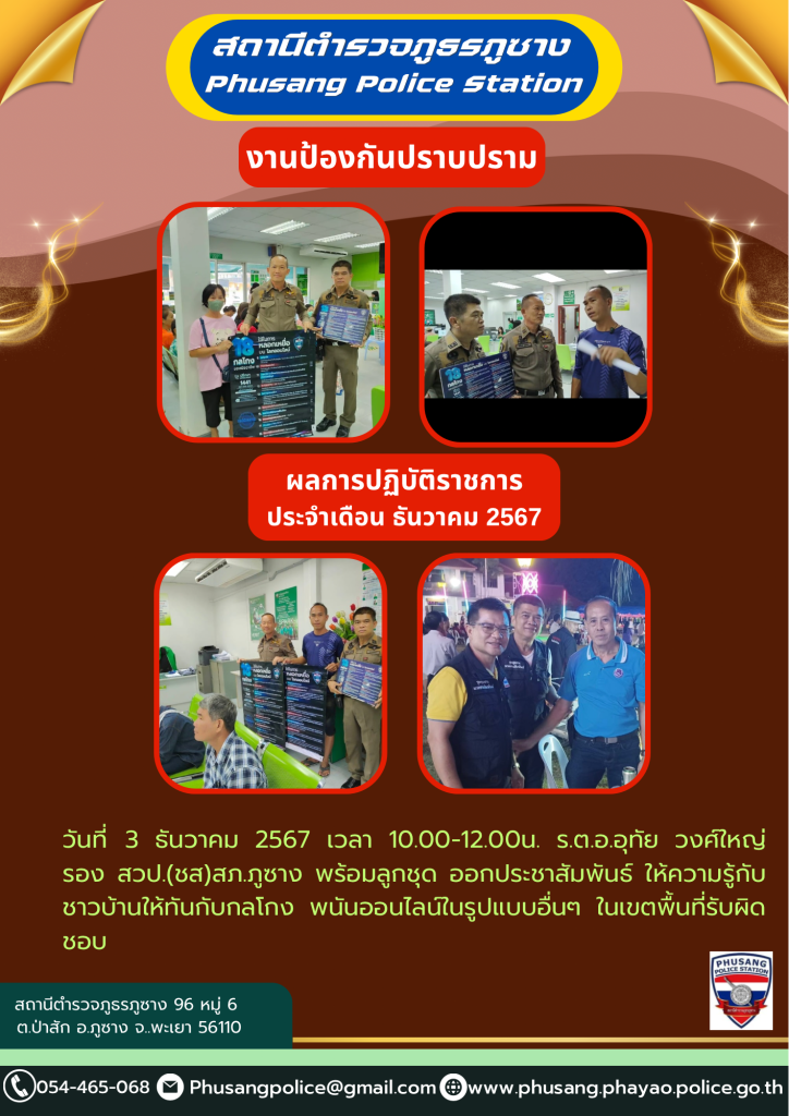 เดือน ธันวาคม 2567 10 มกราคม 2568 โดย admin / งานป้องกันปราบปราม Facebook iconFacebookTwitter iconTwitterLINE iconLine