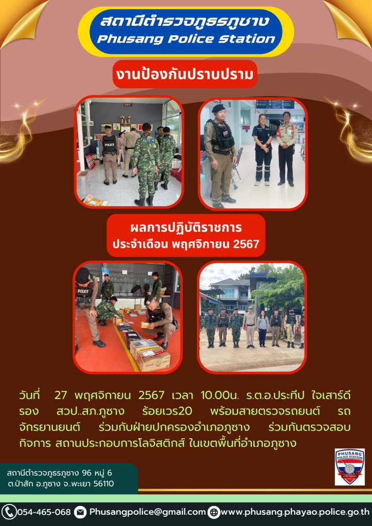 เดือน พฤศจิกายน 2567 9 มกราคม 2568 โดย admin / งานป้องกันปราบปราม Facebook iconFacebookTwitter iconTwitterLINE iconLine
