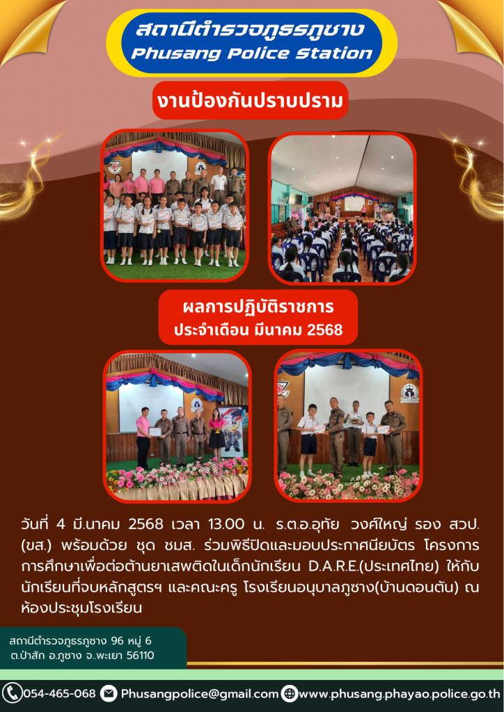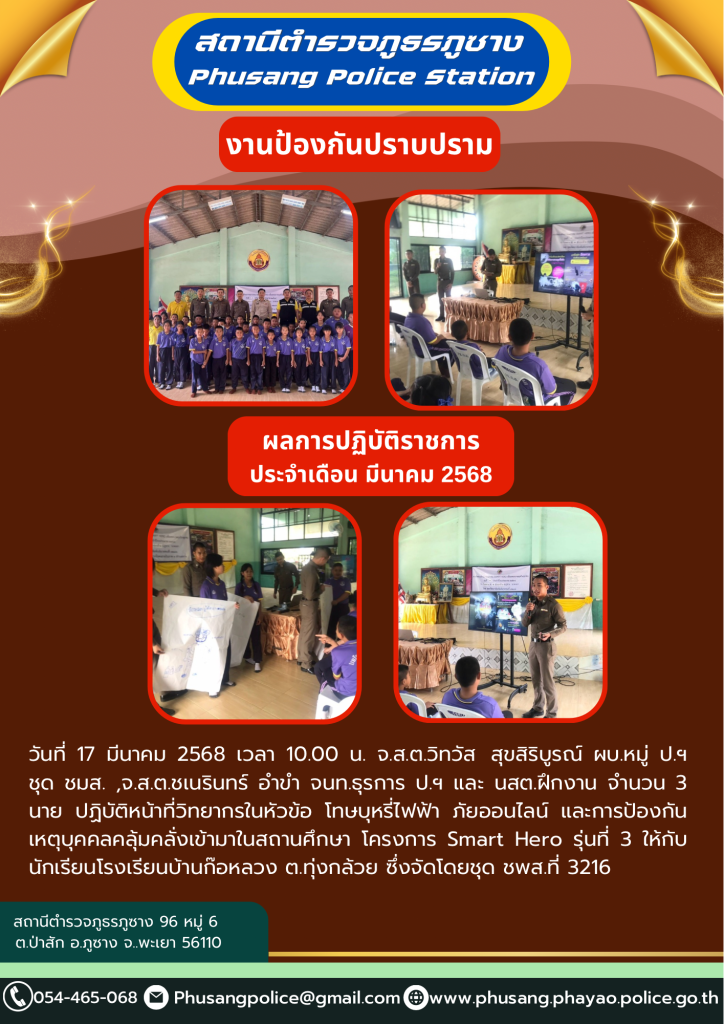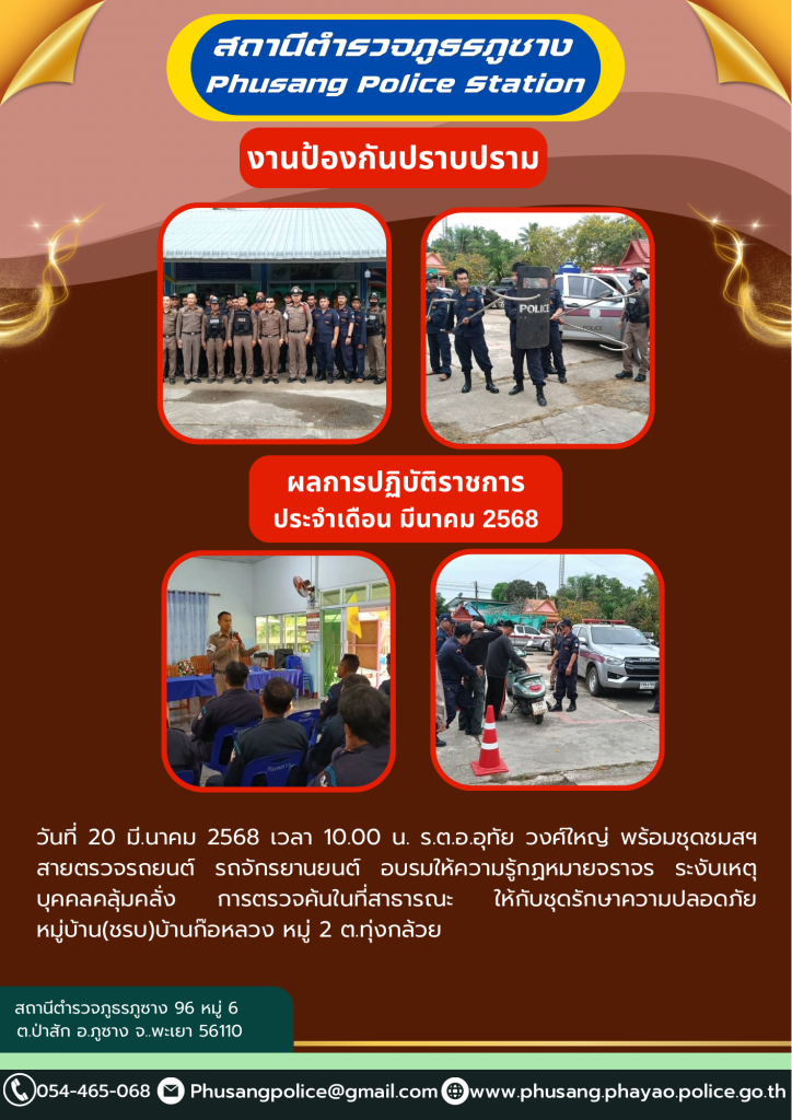 เดือน มีนาคม 2568 30 มีนาคม 2568 โดย admin / งานป้องกันปราบปราม Facebook iconFacebookTwitter iconTwitterLINE iconLine