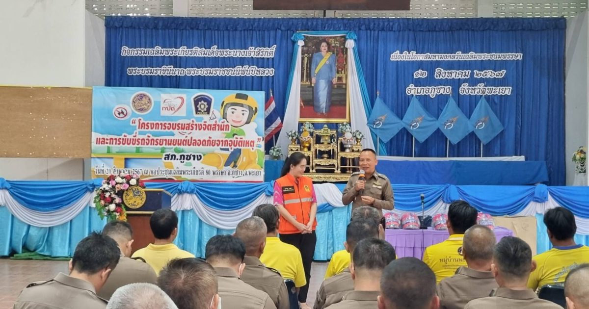 เปิดการอบรมโครงการสร้างจิตสำนึกและการขับขี่รถจักรยานยนต์ปลอดภัยจากอุบัติเหตุประจำปี 2567 ณ หอประชุมเฉลิมพระเกียรติอำเภอภูซางฯ