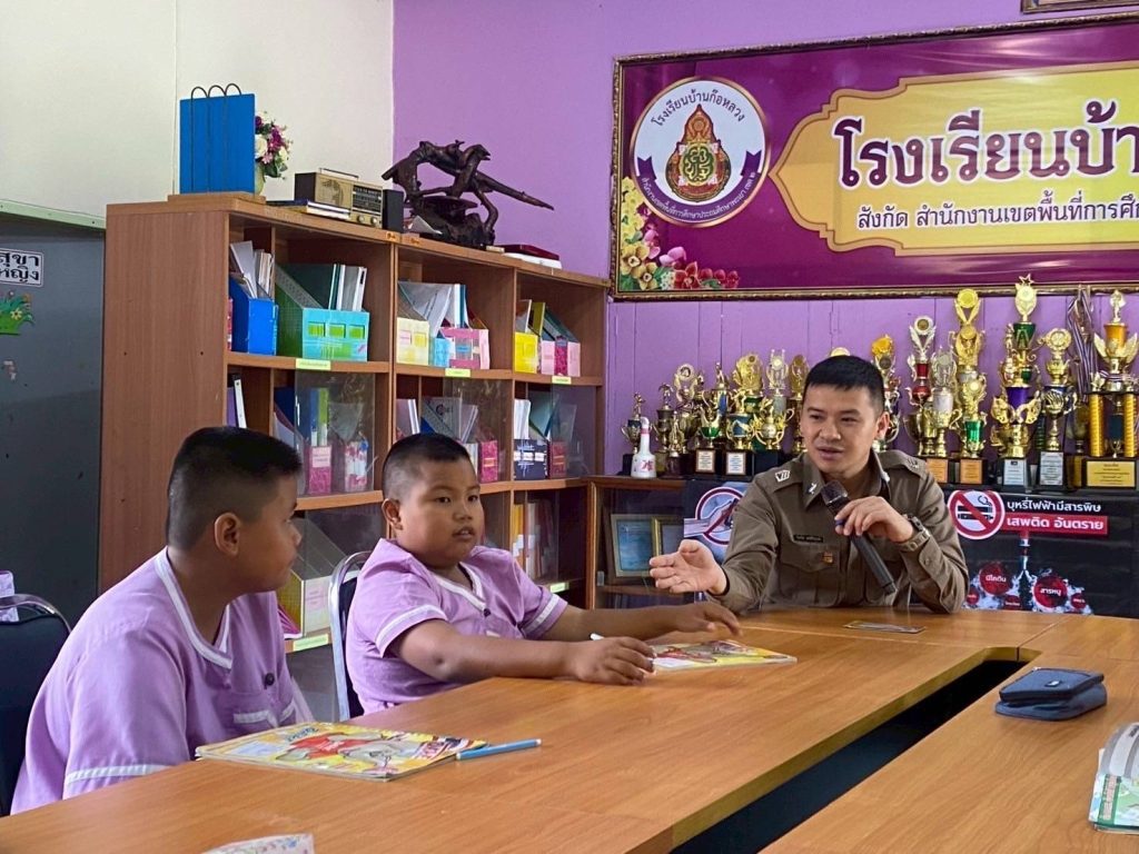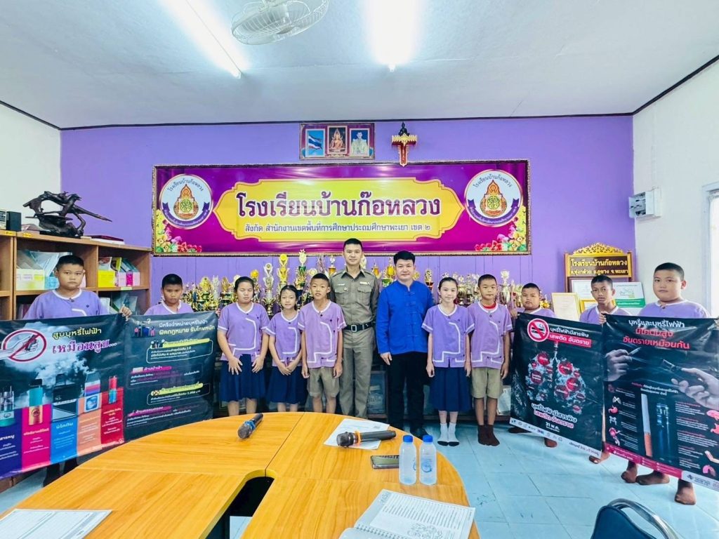 เป็นวิทยากรร่วมกับคณะครูโรงเรียนบ้านก๊อหลวง ในกิจกรรมเสวนาการป้องกันและแก้ไขปัญหาการแพร่ระบาดของบุหรี่และบุหรี่ไฟฟ้าในสถานศึกษาให้กับนักเรียนโรงเรียนบ้านก๊อหลวง ต.ทุ่งกล้วย