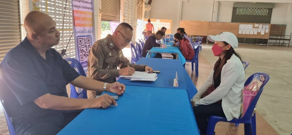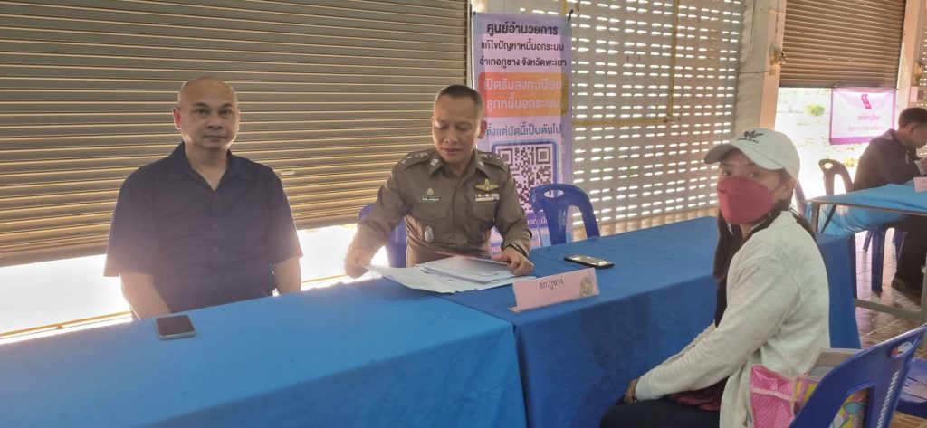 วันนี้ 14 ม.ค. 2567 เวลา 10.00 น. พ.ต.อ.ทีฆวุฒิ บัณฑิตชูสกุล ผกก.สภ.ภูซางฯ และ พ.ต.ท.สุรกิจ เปี่ยมอริยธน รอง ผกก.สส.สภ.ภูซางฯ ได้เข้า ร่วมแก้ไขปัญหาหนี้นอกระบบ “ตลาดนัดแก้หนี้” ให้กับประชาชนในพื้นที่ตามนโยบายของรัฐบาล ณ หอประชุมเฉลิมพระเกียรติ 80 พรรษา อ.ภูซางฯ โดยมีนายกิตติ ชัยดรุณ นายอำเภอภูซาง เป็นประธานฯ