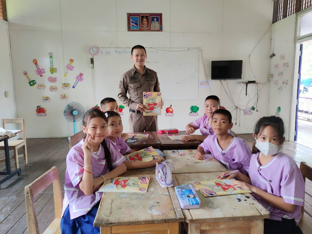 โครงการครู D.E.A.R. 17 พฤษภาคม 2567 โดย Anucha Somrit / ข่าวกิจกรรม/ประชาสัมพันธ์ สภ.ภูซาง,ข่าวกิจกรรม วันที่ 17 พ.ค.67 ตั้งแต่เวลา 08.30 – 09.30 น. โดยการอำนวยการของ พ.ต.อ.ทีฆวุฒิ บัณฑิตชูสกุล ผกก.สภ.ภูซาง , พ.ต.ท.จารุวัจน์ สุปินะ รอง ผกก ป.ฯ ,พ.ต.ท.สุพนธ์ มีจิตร สวป.ฯ มอบหมายให้ ส.ต.อ.วิทวัส สุขสิริบูรณ์ ผบ.หมู่.ป.ฯ ครูตำรวจแดร์ เข้าทำการสอนตามโครงการ D.A.R.E.ให้กับนักเรียนชั้น ป.5 จำนวน 1 โรงเรียน 1 ห้องเรียน – โรงเรียนบ้านก๊อหลวง ต.ทุ่งกล้วย FacebookFacebookXXLINELine