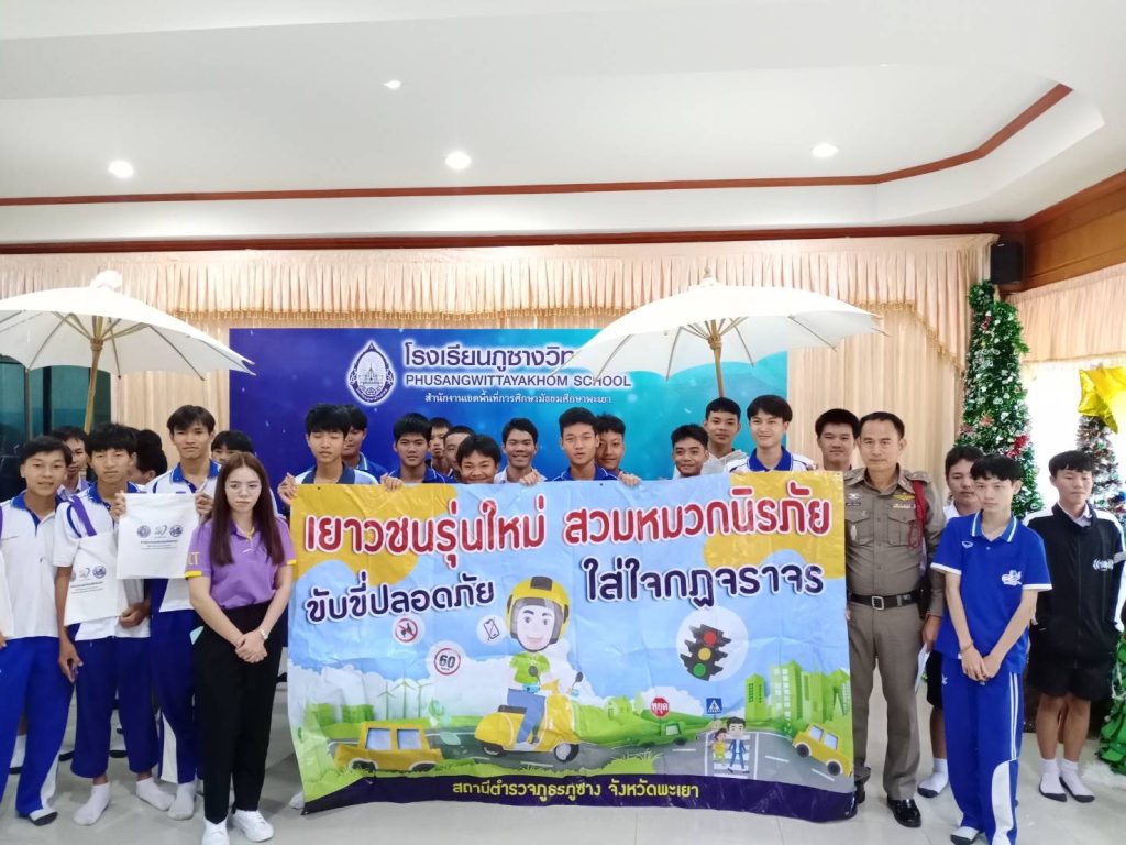 ให้ความรู้กฎหมายจราจร การขับขี่อย่างปลอดภัย ตามโครงการ นักเรียนรุ่นใหม่มีใบขับขี่ และประชาสัมพันธ์โครงการรณรงค์ กวดขัน มีวินัย สวมหมวกนิรภัย 100% แก่นักเรียนภูซางวิทยาคม ณ ห้องประชุมโรงเรียนภูซางวิทยาคม
