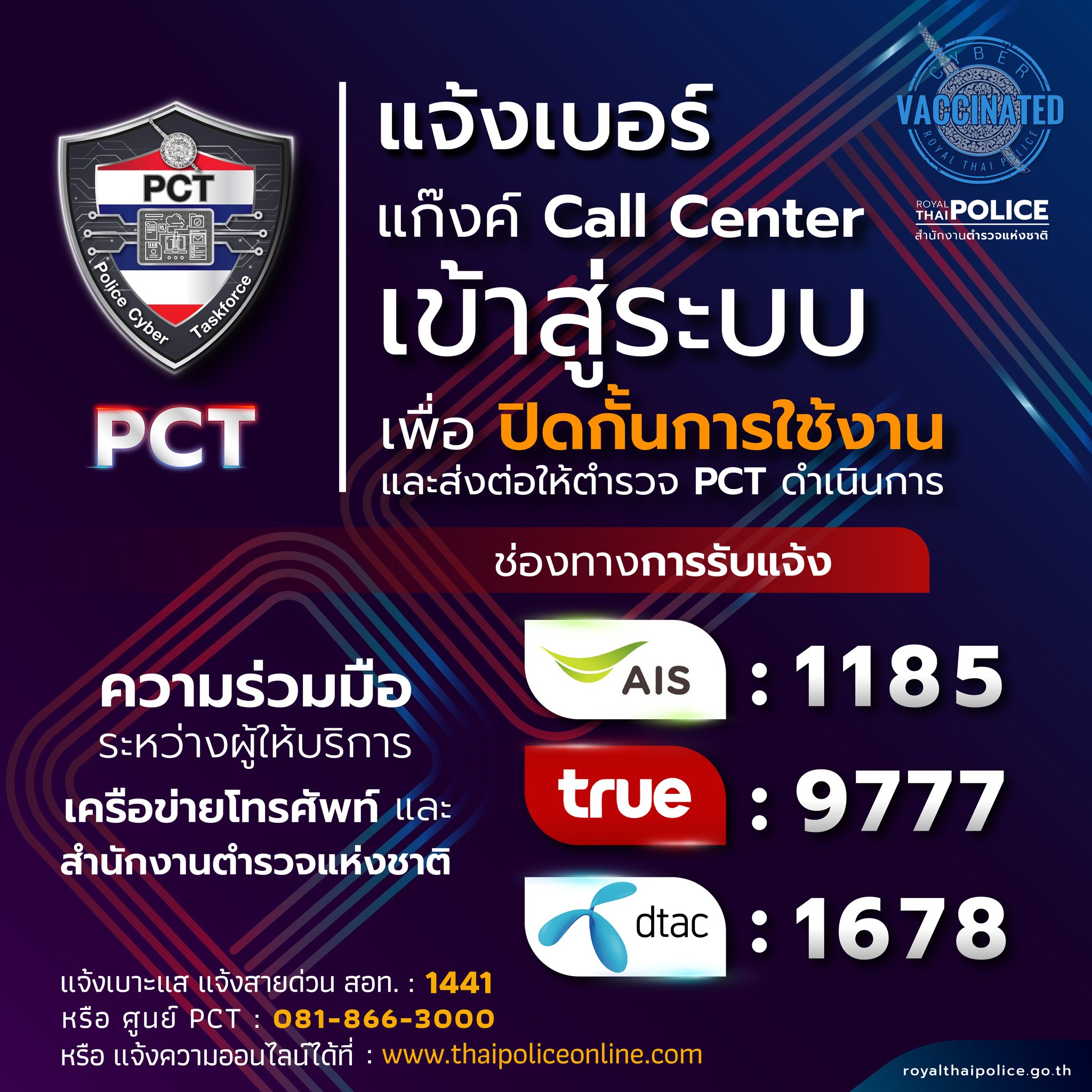 การโทรแจ้งเครือข่ายโทรศัพท์ เพื่อป้องกันแก๊งคอลเซนเตอร์ ร่วมมือตอบโต้ ป้องกัน แก๊งค์คอลเซนเตอร์ ทั้ง