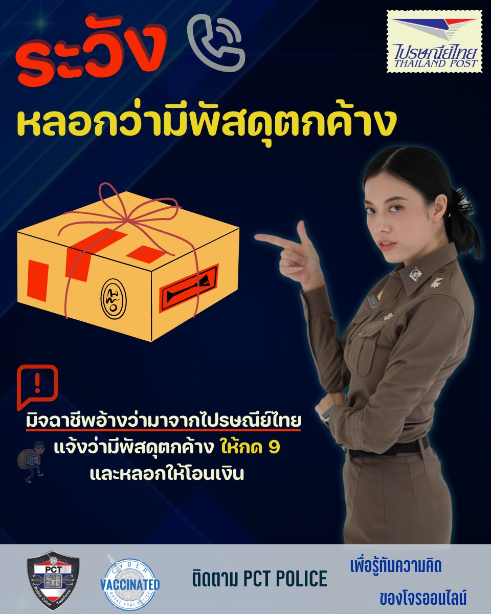 ระวัง! หลอกว่ามีพัสดุตกค้าง มิจฉาชีพแอบอ้างว่าเป็นตัวแทนจากไปรษณีย์ไทย แจ้งว่ามีพัสดุตกค้าง ให้กด 9