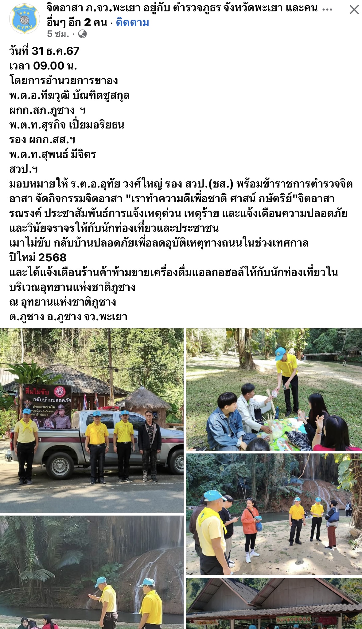 วันที่(31 ธันวาคม 2567) เวลาประมาณ 13.16 น. พ.ต.อ.ทีฆวุฒิ บัณฑิตชูสกุล ผกก.สภ.ภูซางฯ ได้มาตรวจเยี่ยม