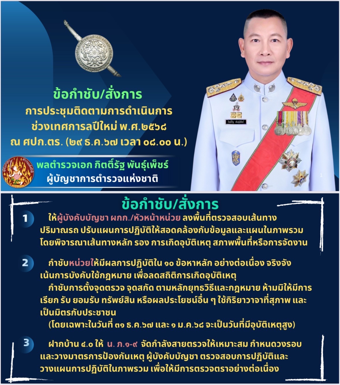 วันที่ 30 ธันวาคม 2567 เวลา 06.00 น. พ.ต.อ.ทีฆวุฒิ บัณฑิตชูสกุล ผกก.สภ.ภูซาง พร้อมข้าราชการตำรวจ สภ