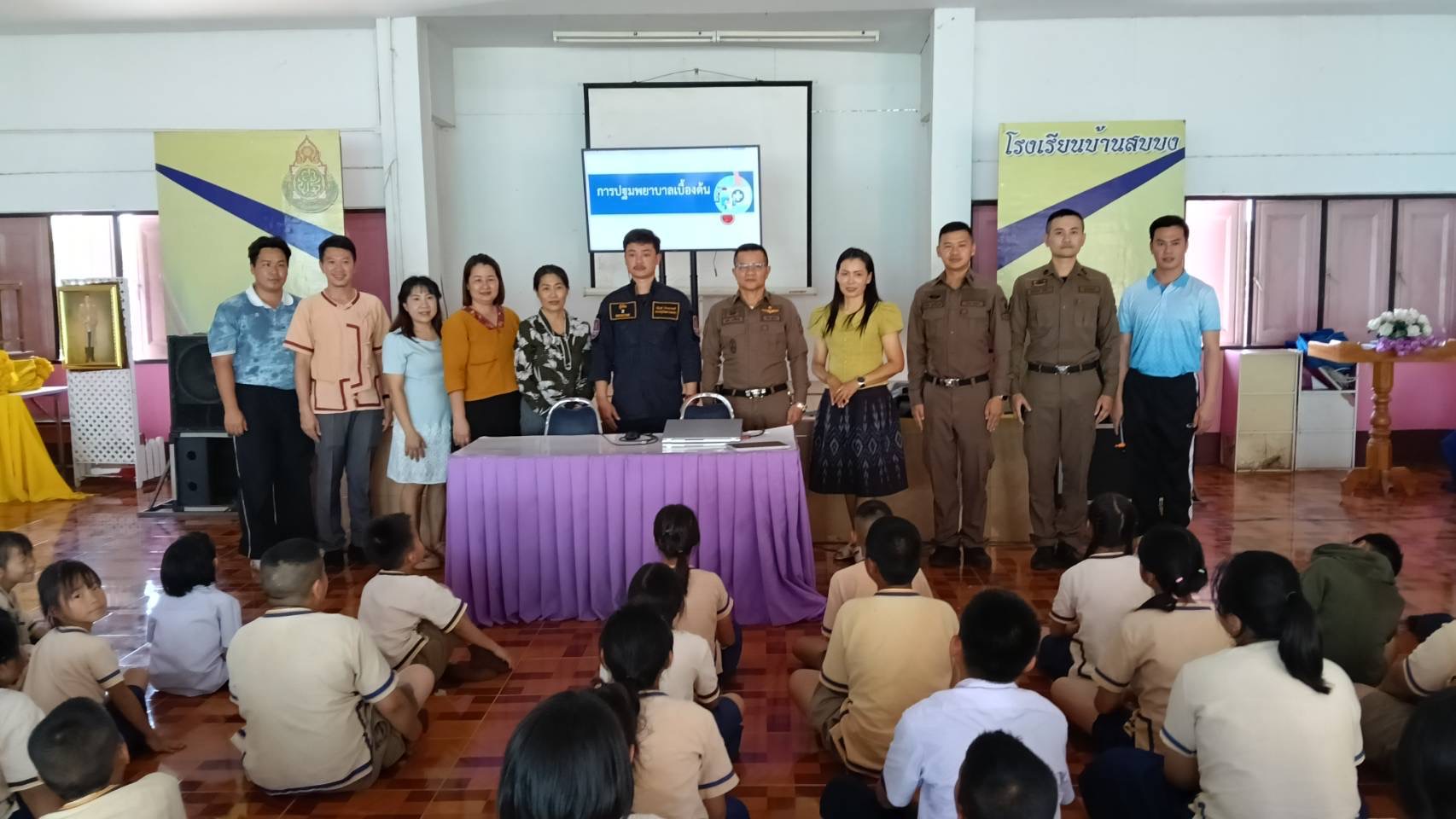 อบรมให้ความรู้การปฐมพยาบาลเบื้องต้นโทษและพิษภัยของบุหรี่ไฟฟ้า การระงับเหตุและวิธีเอาตัวรอดเมื่ออยู่ในสถานการณ์บุคคลคุ้มคลั่ง (หนี/ซ่อน/สู้)ให้กับนักเรียนโรงเรียนบ้านสบบง ณ ห้องประชุมโรงเรียนบ้านสบบง ม.10 ต.สบบง อ.ภูซาง จ.พะเยา