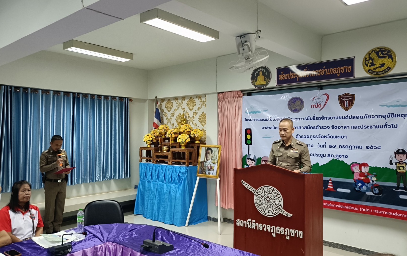 โครงการอบรมสร้างจิตสำนึกการขับขี่รถจักรยานยนต์ ปลอดภัยจากอุบัติเหตุทางถนน ”ให้แก่อาสาสมัครจราจร , อาสาสมัครตำรวจบ้าน จิตอาสา และ ประชาชนทั่วไป ณ ห้องประชุมอำเภอภูซาง