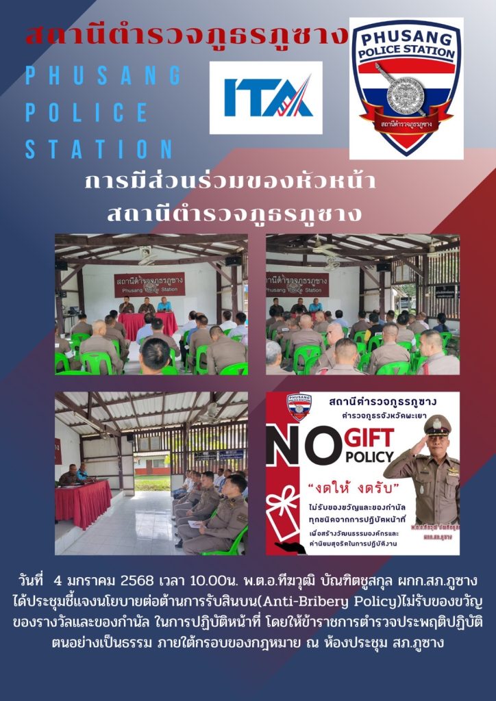 ประชุมชี้แจงนโยบายต่อต้านการรับสินบน(Anti-Bribery Policy) ไม่รับสินบน ของรางวัลและของกำนัล ในการปฏิบัติหน้าที่