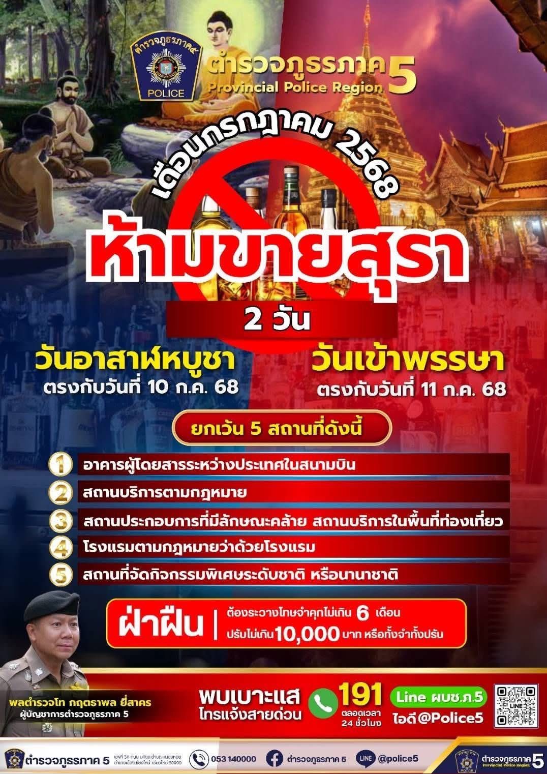 ใน 5️⃣ วันสำคัญทางศาสนา มาฆบูชา วิสาขบูชา อาสาฬหบูชา เข้าพรรษาออกพรรษา เฉพาะในบางสถานที่‼️‼️‼️ ตำรวจ