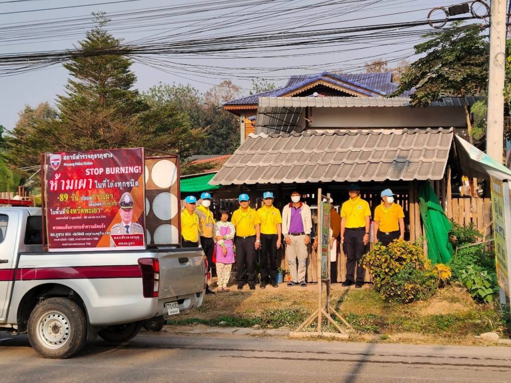 ต่อมา พ.ต.ท.จารุวัจน์ สุปินะ รอง ผกก.ป.ฯ พร้อมข้าราชตำรวจชุดจิตอาสา ได้ออกรณรงค์ ประชาสัมพันธ์ ตามร้านค้า ร้านอาหาร, ร้านสะดวกซื้อ, ชุมชน และโรงเรียน เพื่อให้ทุกฝ่ายร่วมมือป้องกันและแก้ไขปัญหาไฟป่า หมอกควัน และฝุ่นละอองขนาดเล็ก pm2.5